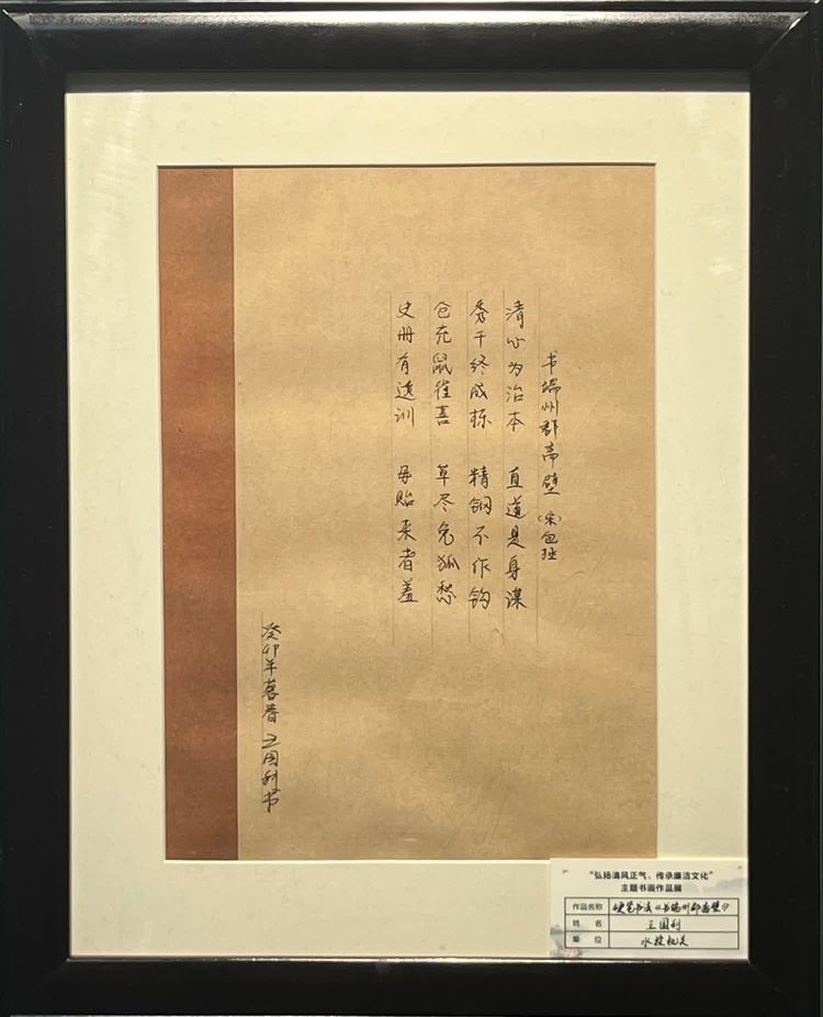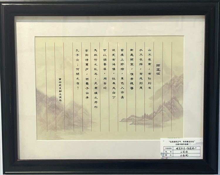 一幅幅寫滿正氣的書法、一幅幅描繪廉潔的畫卷,書畫展從籌備到展出歷時近20天,面向基層黨支部征集國畫、水彩畫、書法、攝影等作品80余件。參展作品內容豐富、風格多樣,創作者們把廉潔自律、勤政為民、警示教育、廉潔家風等內容融入作品中,充分體現廉潔文化的豐富內涵,形象、生動、直觀地傳遞給參觀者,吸引廣大黨員干部及職工群眾駐足觀看。
