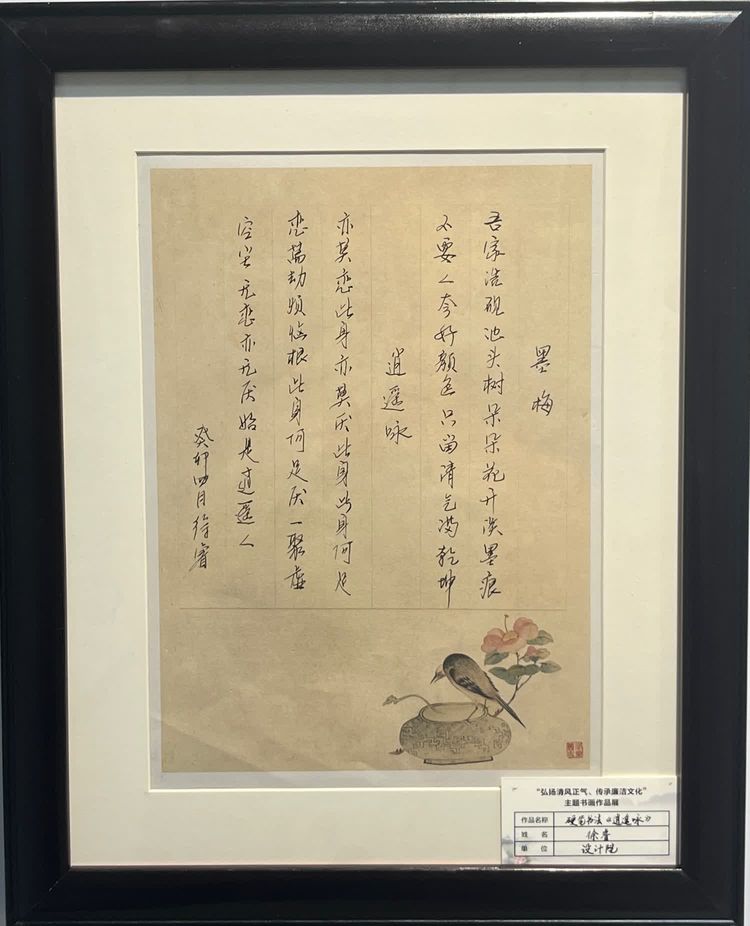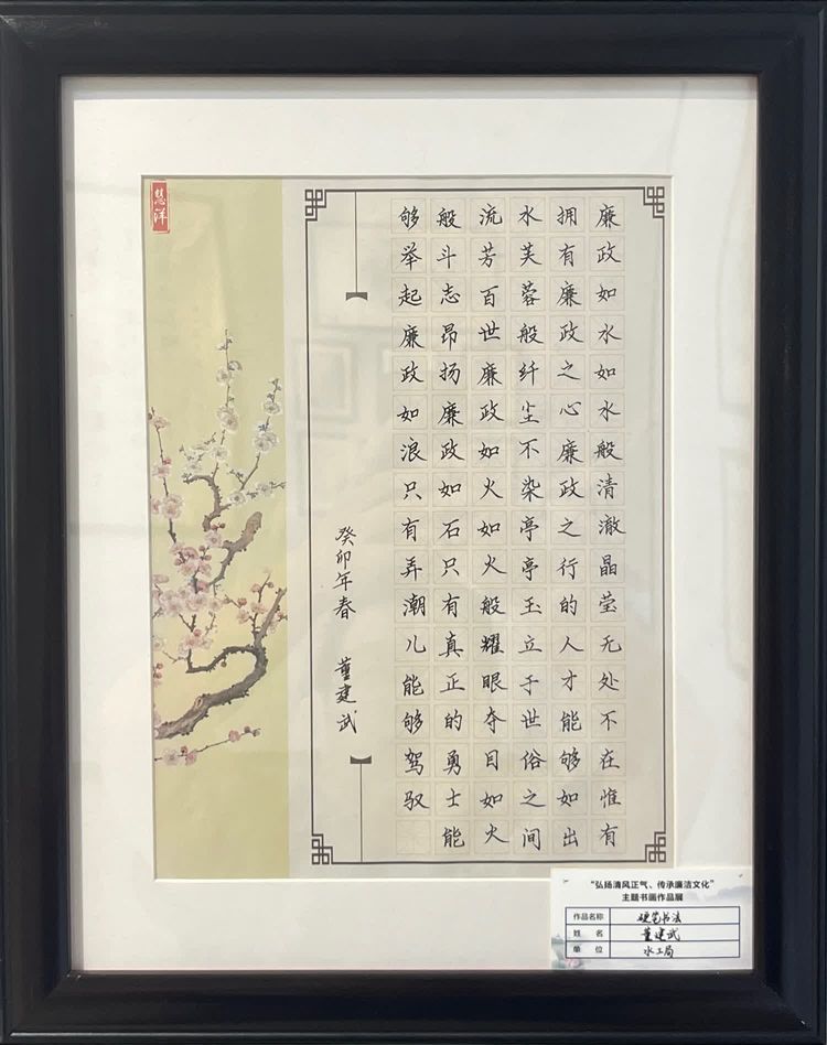 “清廉者,乃清正廉潔、大道直行、奉公守法也”“粉身碎骨渾不怕,要留清白在人間”“不要人夸好顏色,只留清氣滿乾坤”《清廉賦》、《石灰吟》、《墨梅》……一張張寫滿正氣的書法、一幅幅描繪廉潔的畫卷,傳遞著清正廉潔主旋律,弘揚著擔當實干正能量。