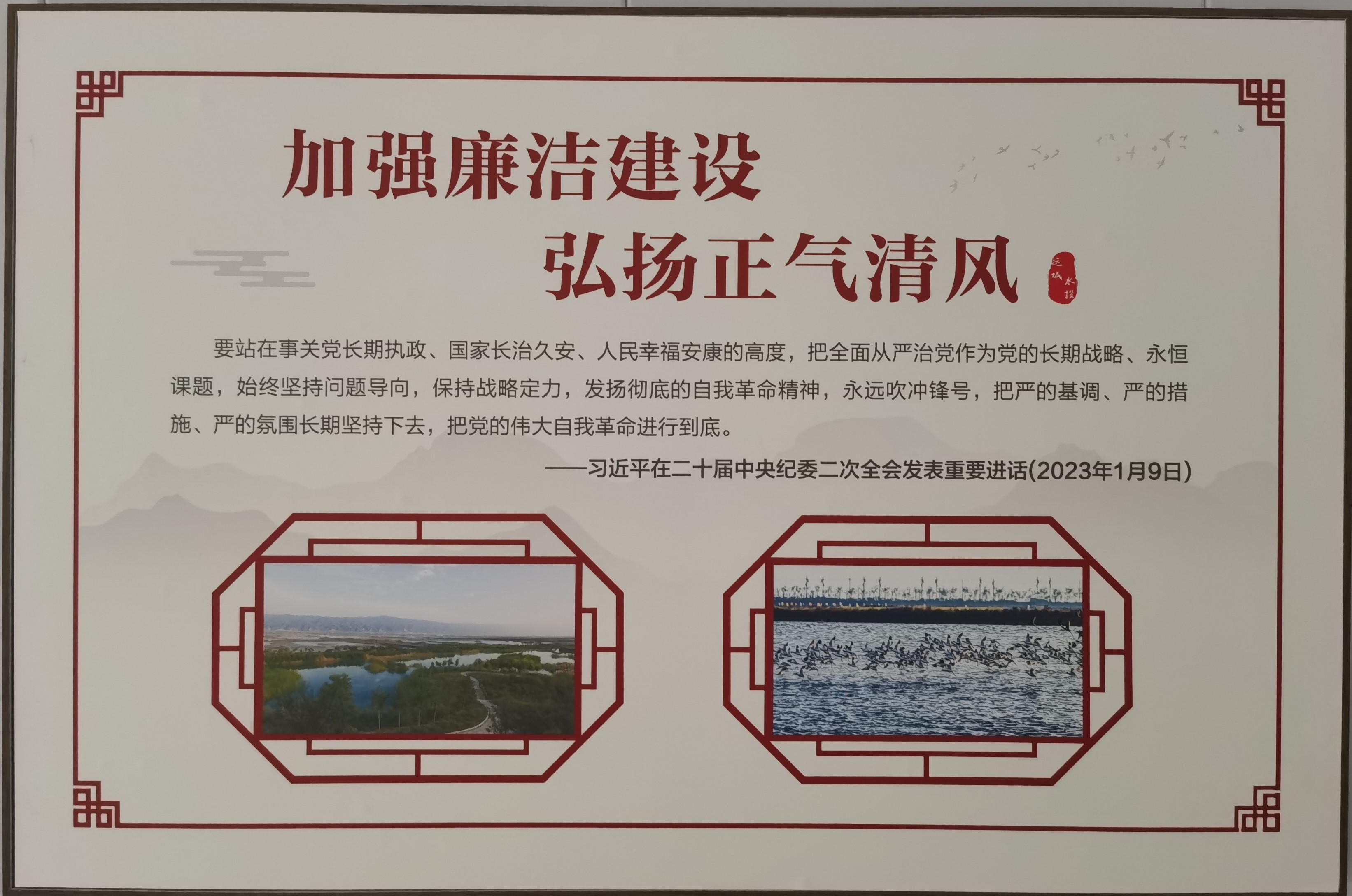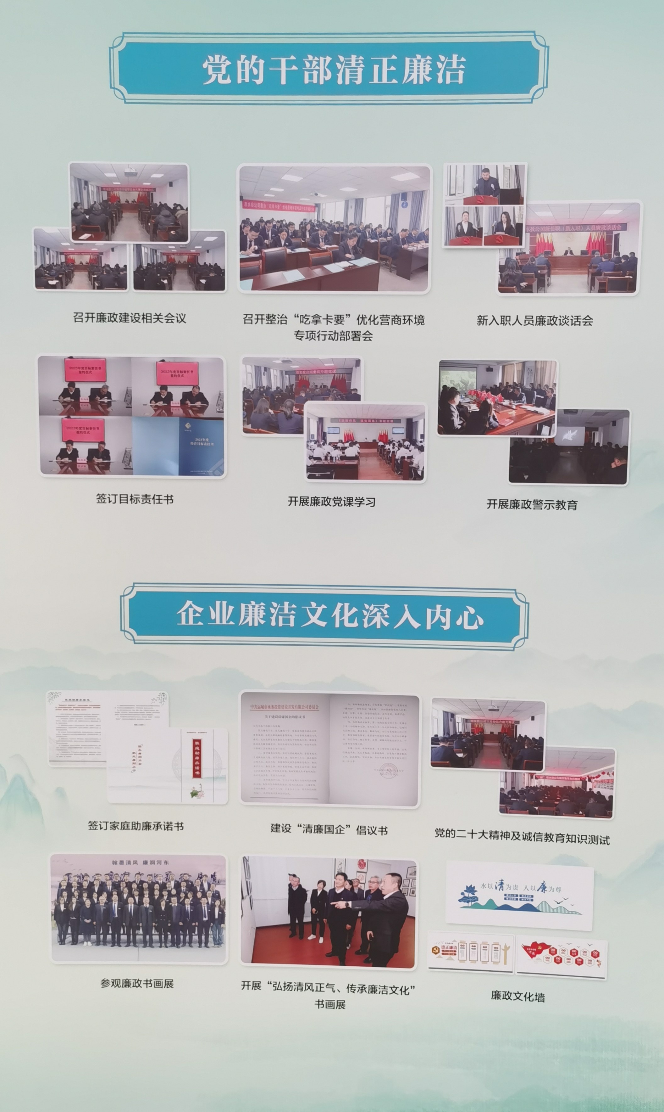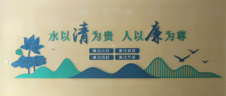 走進公司辦公樓,映入眼前的一幅以“水以清為貴 人以廉為尊”為主題的廉政文化墻,讓人入眼入心,敬廉崇尚的山水風,簡約凝練的文字,與構建“清廉之風”潤“人水和諧”的良好生態發展相融合。同時,通過廉政書畫室建設、清廉習語版面、廉政形象墻、水生態治理修復成效版面等多角度多層次厚植了廉政理念,夯實了廉政根基,營造了學廉敬廉的濃厚氛圍。