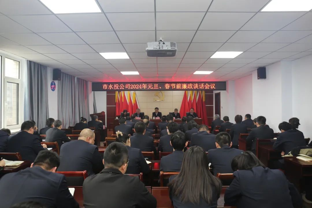 元旦、春節(jié)“雙節(jié)”將至,為深入貫徹落實黨的二十大精神和中央、省、市紀委監(jiān)委有關(guān)部署要求,進一步加固中央八項規(guī)定堤壩、弛而不息糾治“四風(fēng)”,大力營造清廉過節(jié)的濃厚氛圍,12月29日下午,我公司召開2024年元旦、春節(jié)前廉政談話會議,公司班子成員,各子公司班子成員及機關(guān)全體干部職工參加。公司黨委副書記、總經(jīng)理薛文兵主持會議。