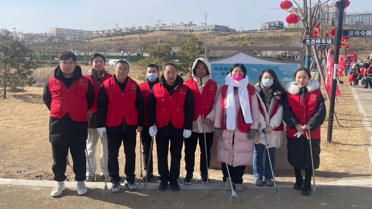 活動中,黨員同志們身穿紅馬甲,分工明確、密切配合,按照事先劃分區域開展行動。大家手持垃圾鉗、垃圾袋等工具,圍繞鹽湖22號堤埝、濕地公園、11-1號路等范圍,深入堤埝兩側、蘆葦叢等對煙頭、塑料瓶、泡沫、果皮紙屑等垃圾進行撿拾清理,共清理清運垃圾60余袋,在大家齊心協力下鹽湖周邊衛生環境得到明顯改善。