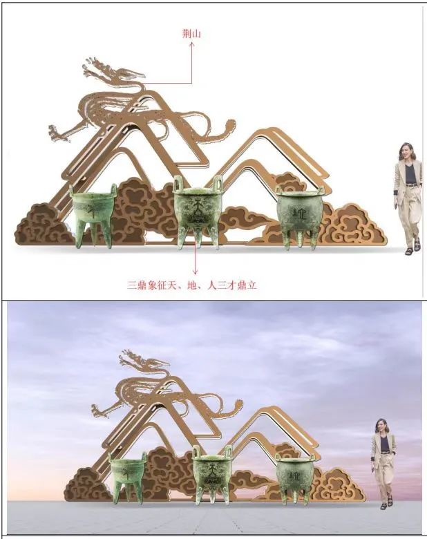 軒轅黃帝經過涿鹿之戰,占領鹽池之資源,娶西陵氏嫘祖,采取中條山之銅,鑄三鼎于荊山腳下,象征天地人三才鼎立。鼎成,有龍自天而下,前來接引,黃帝及大臣七十人升天而去。其余的人拽住龍須,龍須斷,都掉落下來,抱著黃帝的弓與龍須號哭。河東方言,荊讀作介,表示孤獨,亦為介子推故里。孤山腳下今有荊村遺址,為仰韶文化廟底溝類型。孤山上有橋山,為黃帝葬處,并立有黃帝廟。后來于漢武帝時于后土祠旁得一鼎,迎歸甘泉宮,改號元鼎,封禪泰山。唐開元十年又得一寶鼎,乃改名為寶鼎縣。
