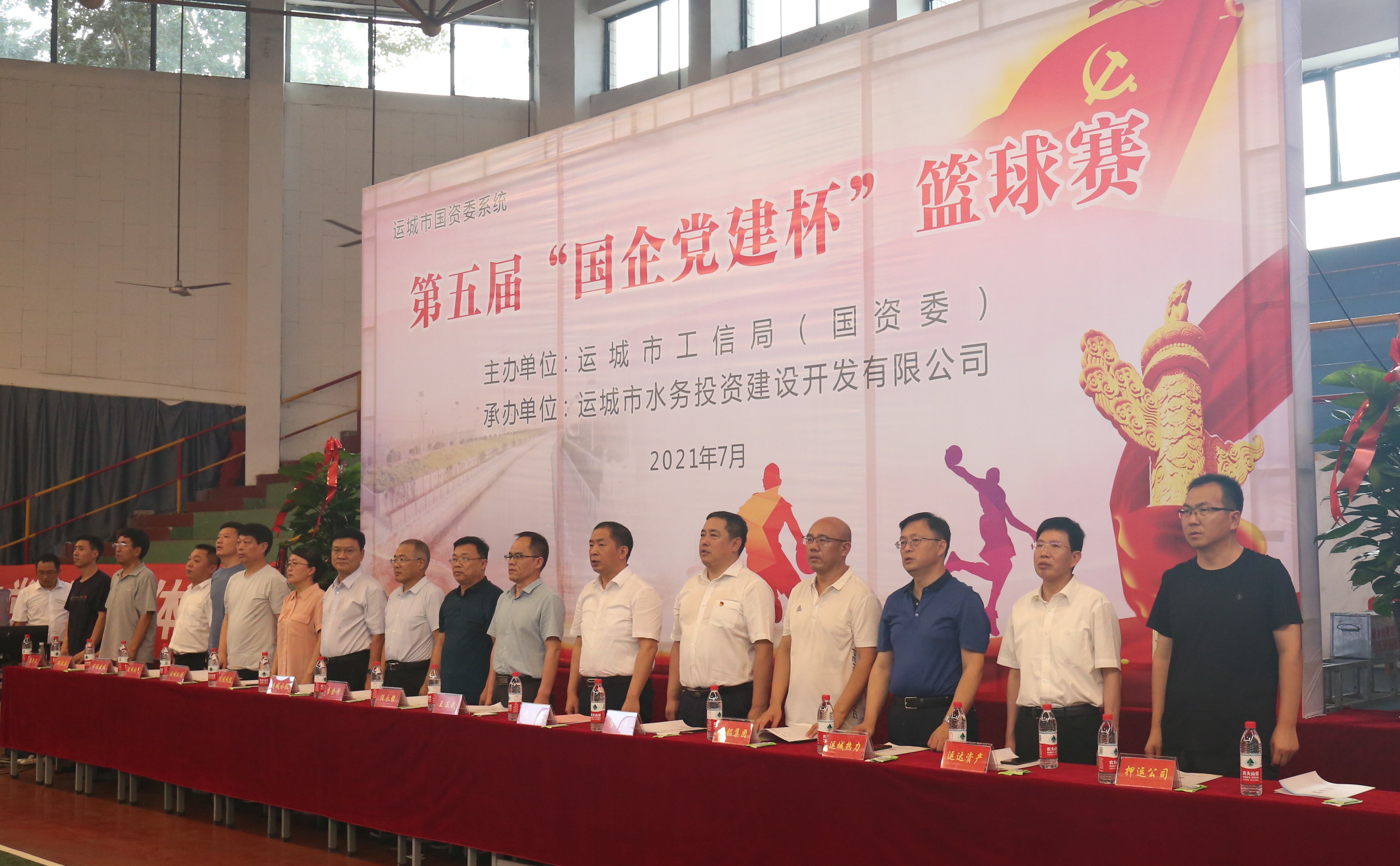 7月13日,由運城市工信局(國資委)主辦、運城市水務投資建設開發有限公司承辦的運城市國資委系統第五屆“國企黨建杯”籃球賽在運康中學體育館隆重開幕。市政府副秘書長王正武、市工信局(國資委)局長彭夢森、市水投公司董事長崔作銘等領導出席了本次開幕式。