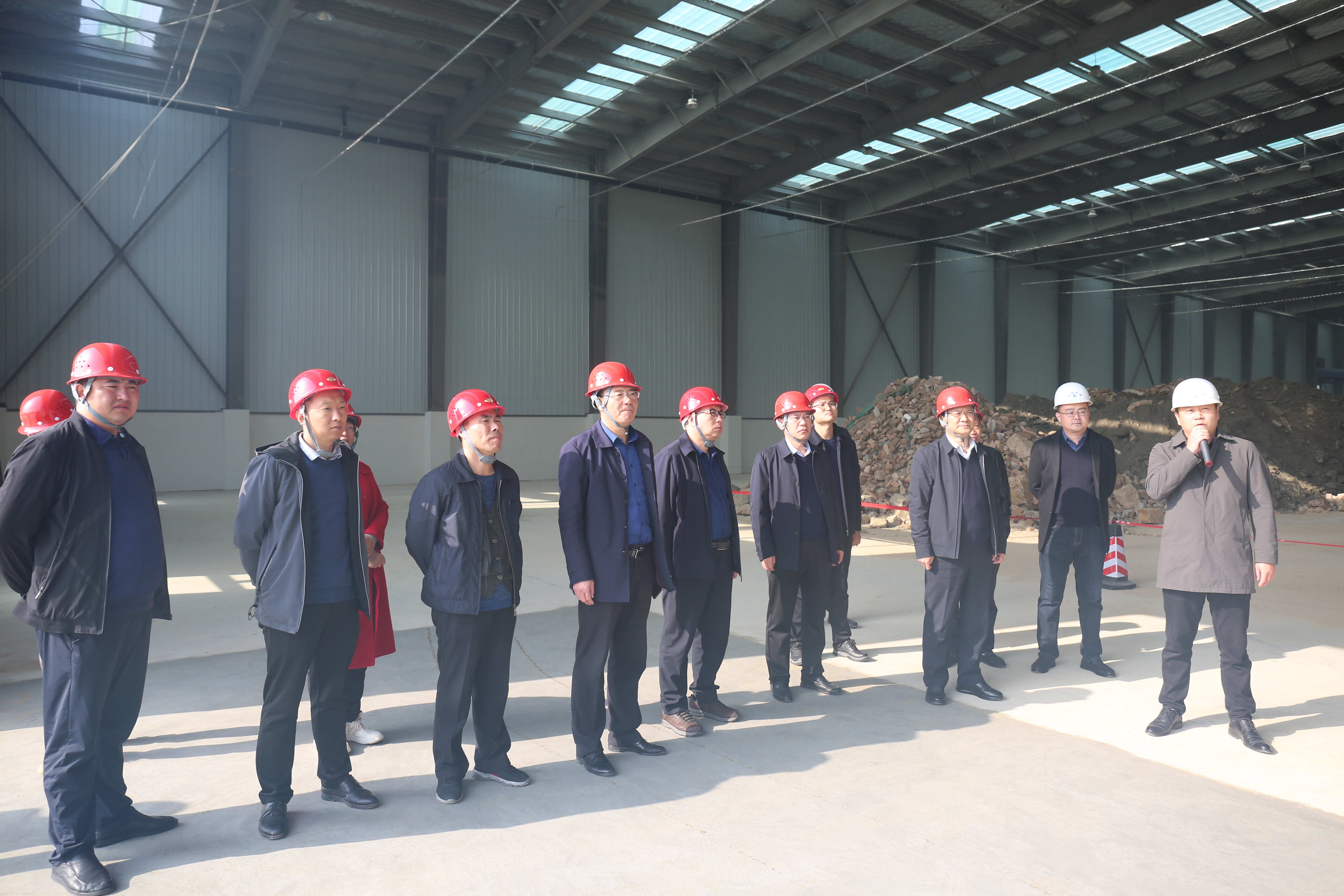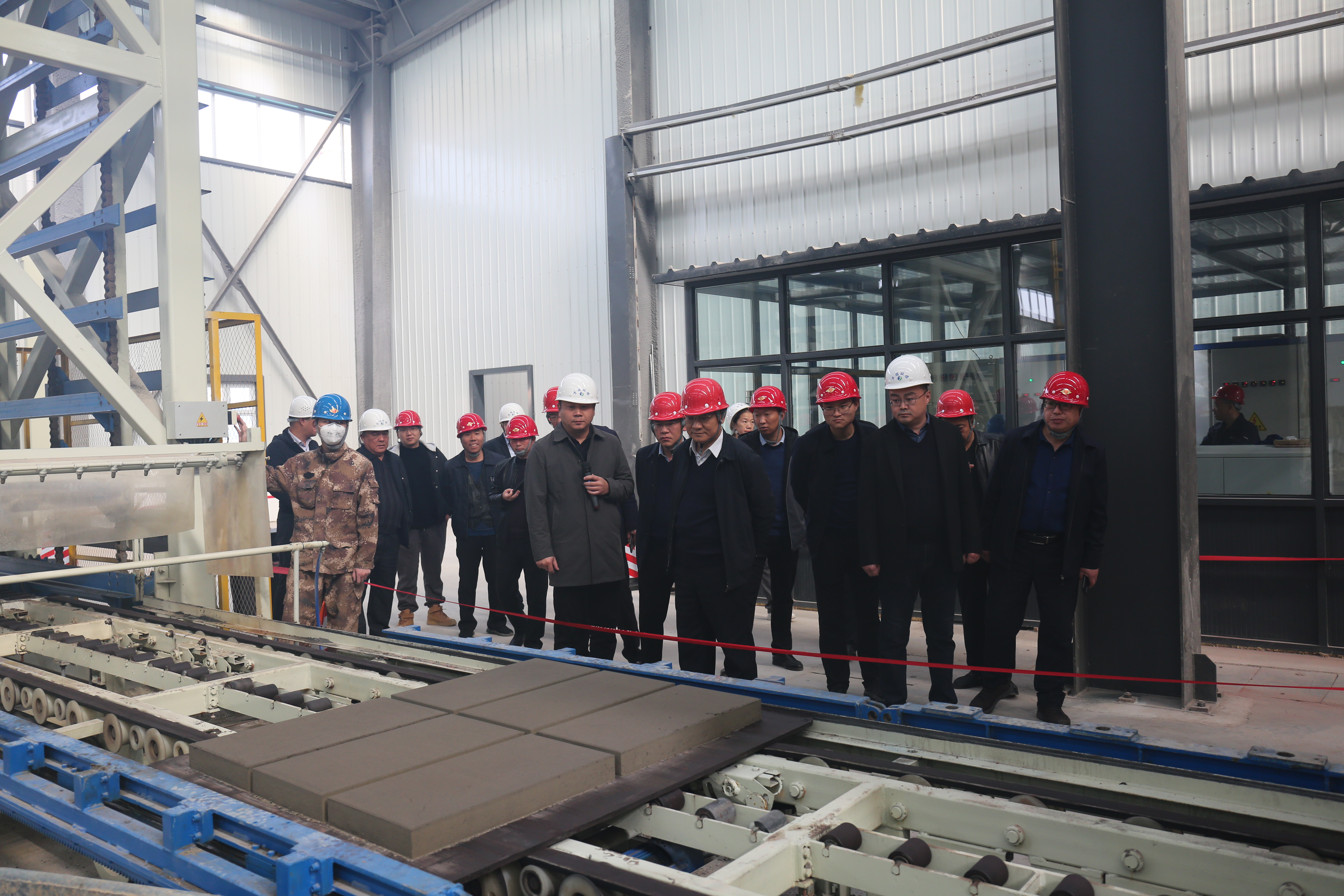 董事長一行人在萬瑞環保公司董事長張海淼和其他公司高管陪同下參觀了生產車間,深入了解了各類資源化產品生產線的具體生產工藝流程,對產品性能和質量進行了各方面交流。