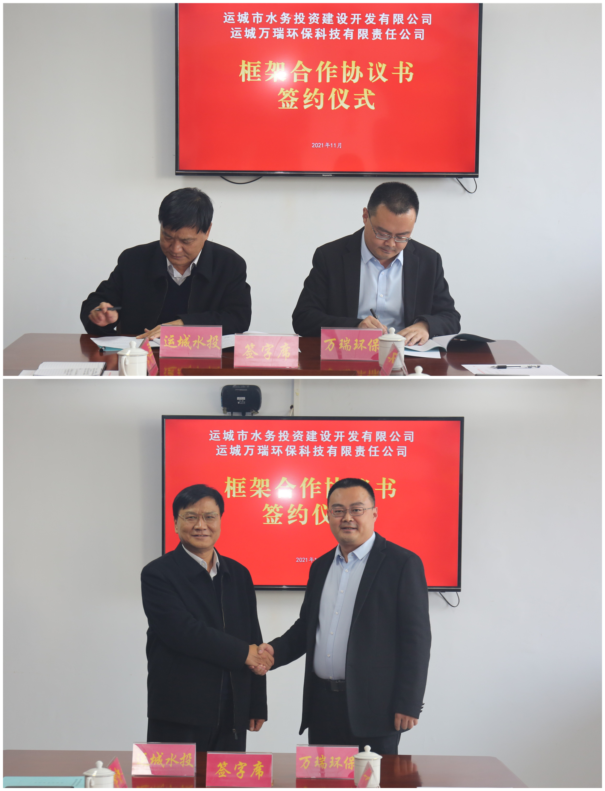 11月5日,運城市水務(wù)投資建設(shè)開發(fā)有限公司(以下簡稱市水投公司)與運城萬瑞環(huán)保科技有限責任公司(以下簡稱萬瑞環(huán)保公司)框架合作協(xié)議簽約儀式,在市水投公司隆重舉行。