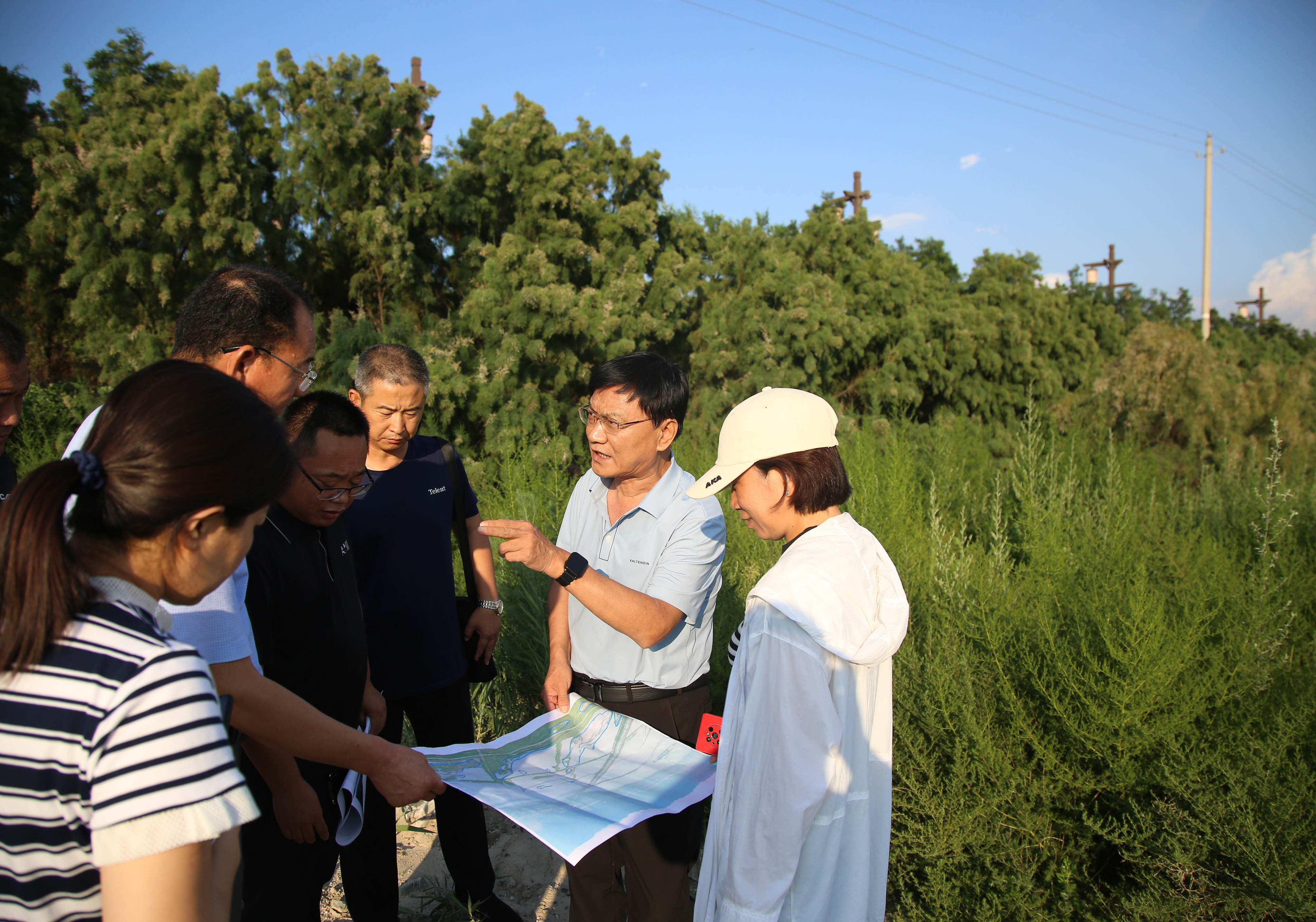 8月3日下午,為保證施工安全和工程質量,加快施工進度,進一步優化設計方案,公司董事長兼總經理崔作銘帶隊赴鹽池跨湖大道以西實地踏勘,現場研討施工方案。市水工局、鹽池項目相關負責人陪同檢查。