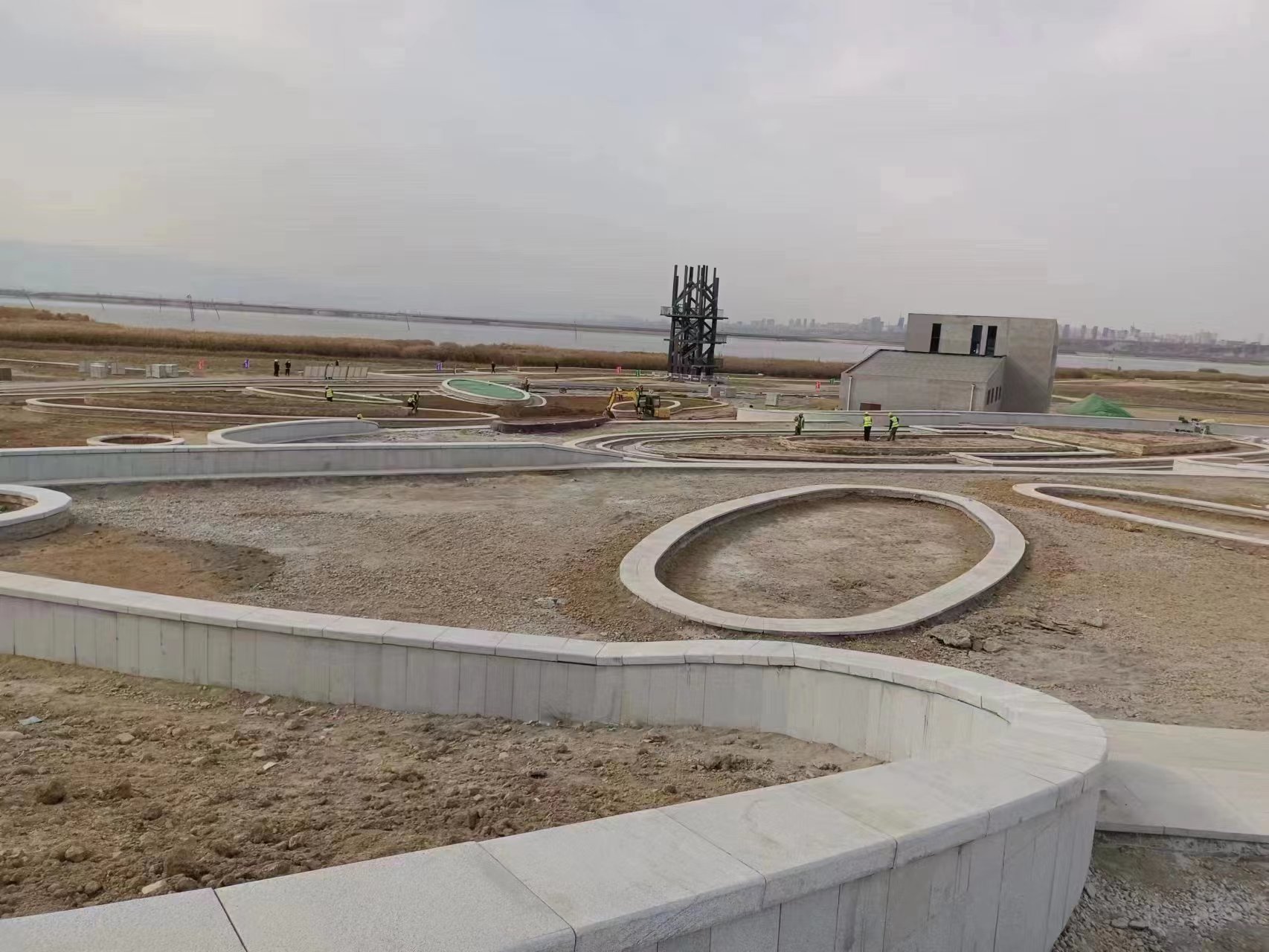 鴨子池水生態(tài)綜合提升工程重大項(xiàng)目不斷刷新建設(shè)新“進(jìn)度”,以實(shí)際行動(dòng)踐行水投責(zé)任。主廣場(chǎng)1臺(tái)至4臺(tái)花池完成貼文化石;停車場(chǎng)水泥磚鋪裝完成。沙灘基礎(chǔ)平整完成,巡湖塔鋼結(jié)構(gòu)主體吊裝完成。