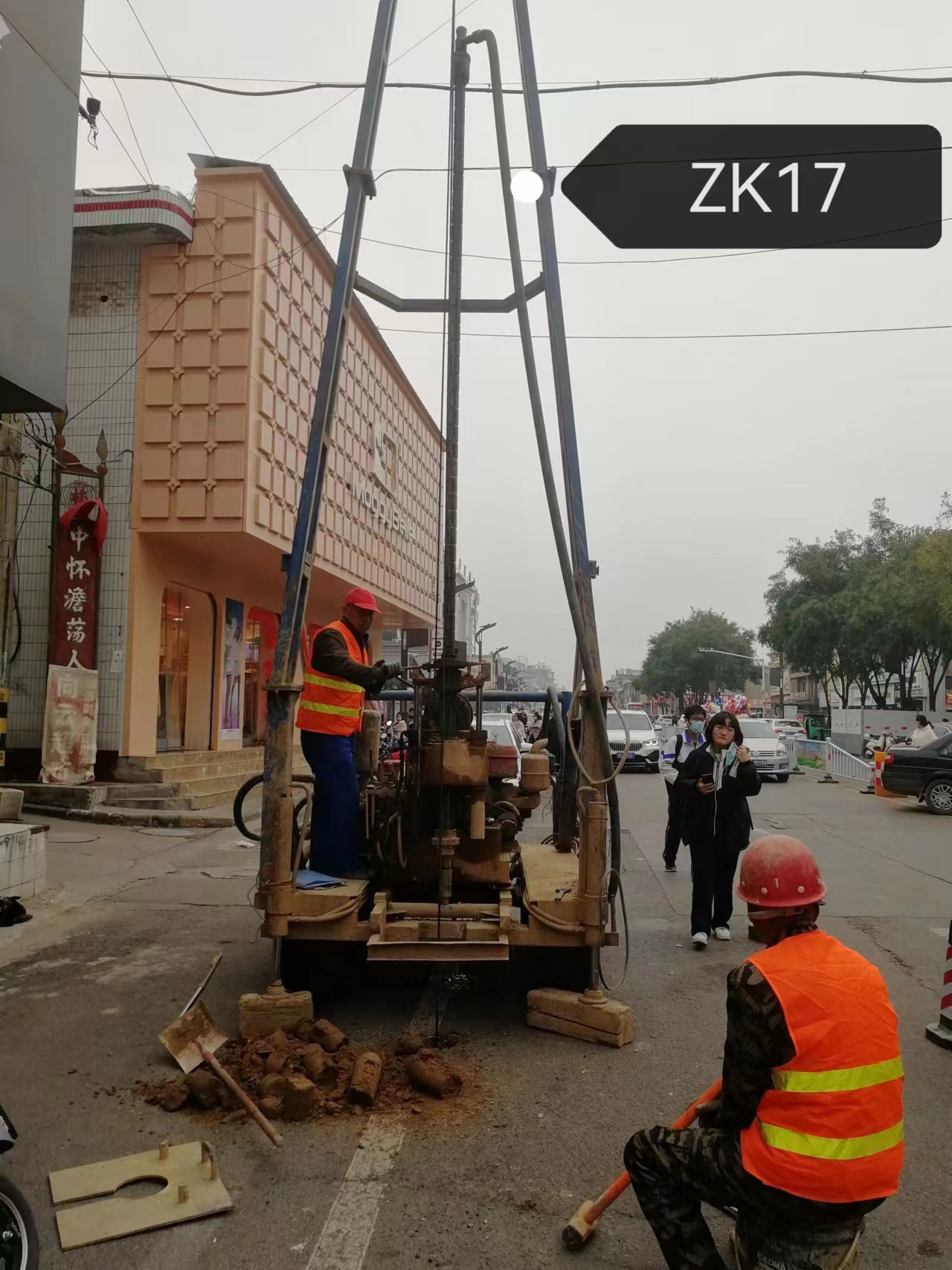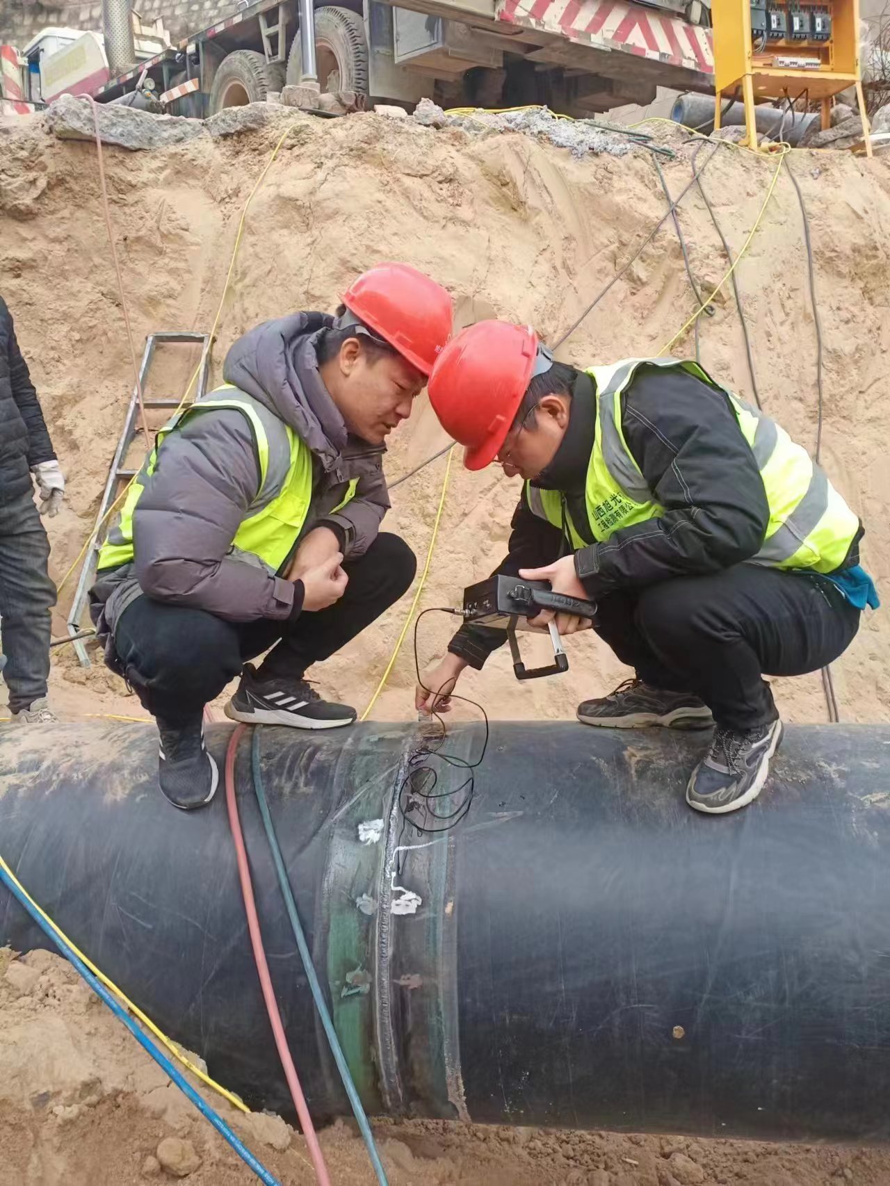 技術人員頂寒風深入河津市5號排水渠項目建設區域進行細致踏勘作業