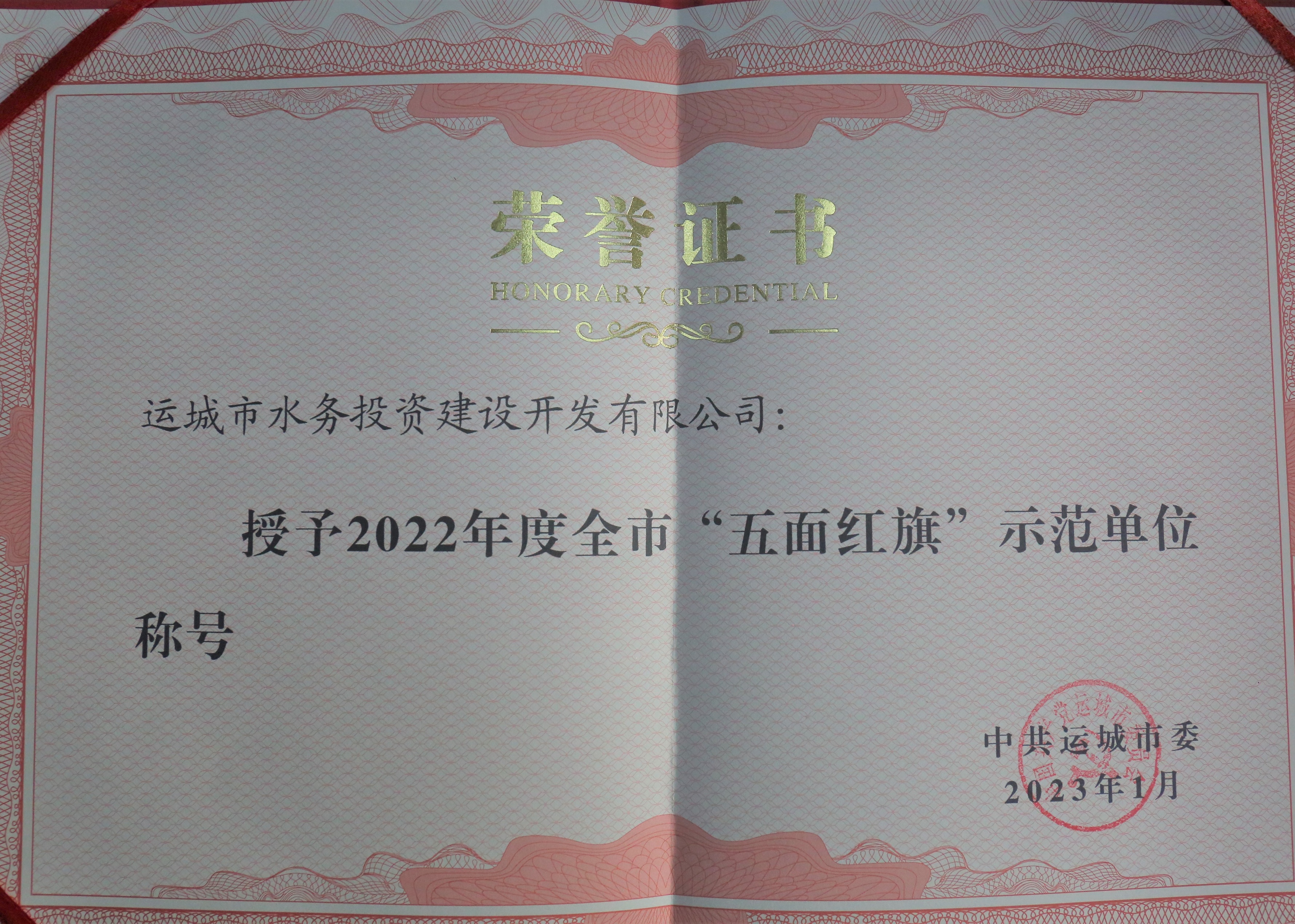 近日,運城市水投公司被中共運城市委授予了2022年全市“五面紅旗”示范單位榮譽稱號。