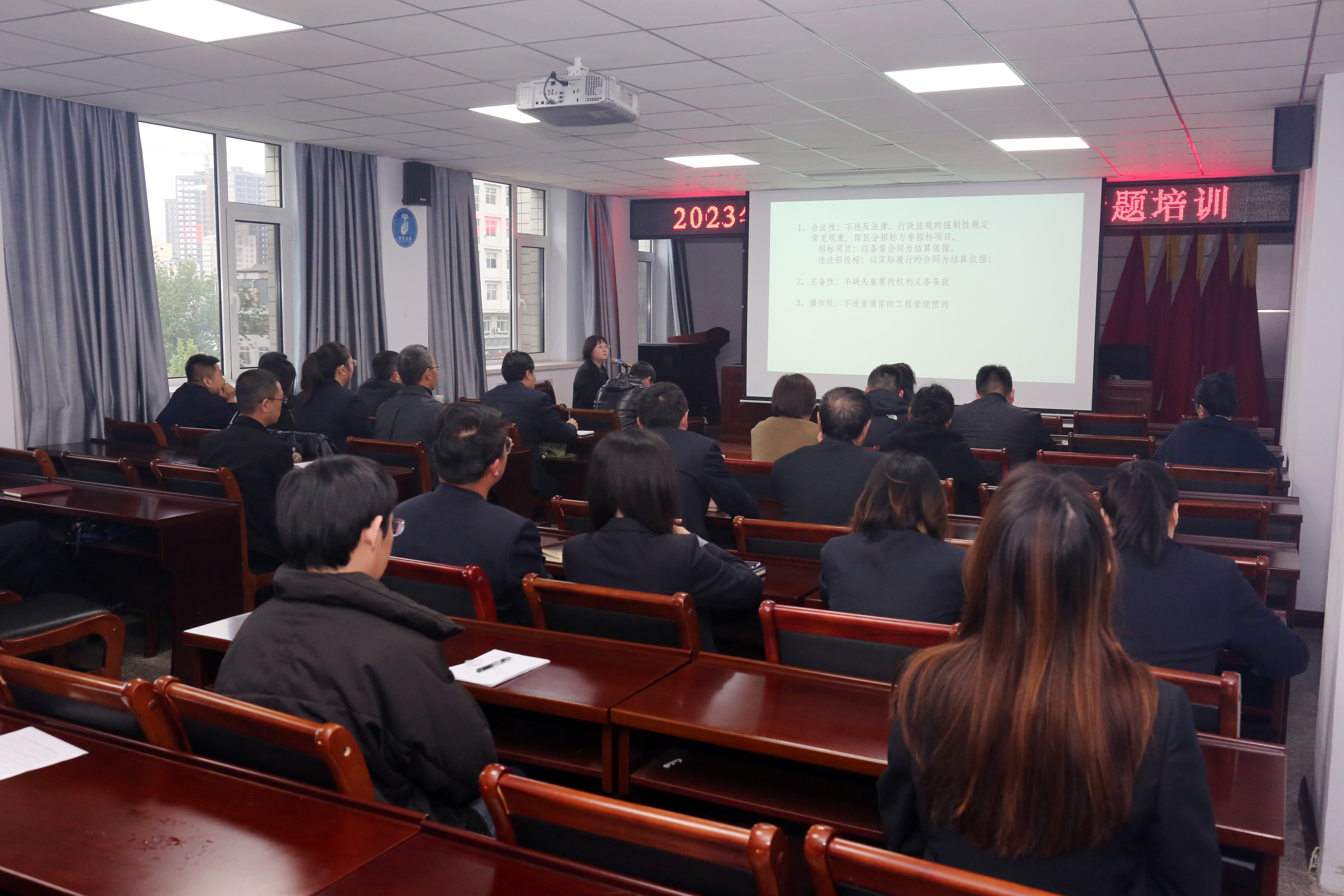 為進(jìn)一步提高公司管理人員依法決策、依法管理能力,防范各類經(jīng)營(yíng)風(fēng)險(xiǎn),加強(qiáng)合同規(guī)范管理,引導(dǎo)公司合法合規(guī)經(jīng)營(yíng),4月23日下午,公司邀請(qǐng)山西衡宵律師事務(wù)所執(zhí)業(yè)律師周佳毅和劉寶哲講解了關(guān)于“合同合規(guī)管理”的相關(guān)知識(shí),公司領(lǐng)導(dǎo)班子、各子公司、各部室負(fù)責(zé)人及相關(guān)管理人員共計(jì)40余人在公司六樓會(huì)議室參加了培訓(xùn)。