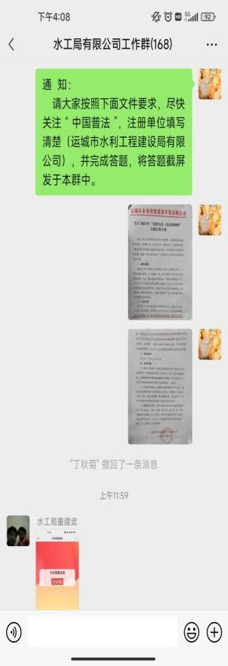 為加大《民法典》宣傳,努力讓每一名干部職工走進民法典、了解民法典、運用民法典,切實增強廣大干部職工的法治意識和法治信仰,5月29日運城市水利工程建設局有限公司組織干部職工開展2023年“美好生活•民法典相伴”主題活動。活動現場傳達了運城市水務投資建設開發有限公司《關于2023年“美好生活•民法典相伴”主題宣傳方案》,并向大家介紹了民法典的重要意義。活動中干部職工積極關注“中國普法”,注冊賬號并進行了答題。此次活動激發干部職工主動學習法律知識,增強了用法治思維和法治方式解決問題的能力。