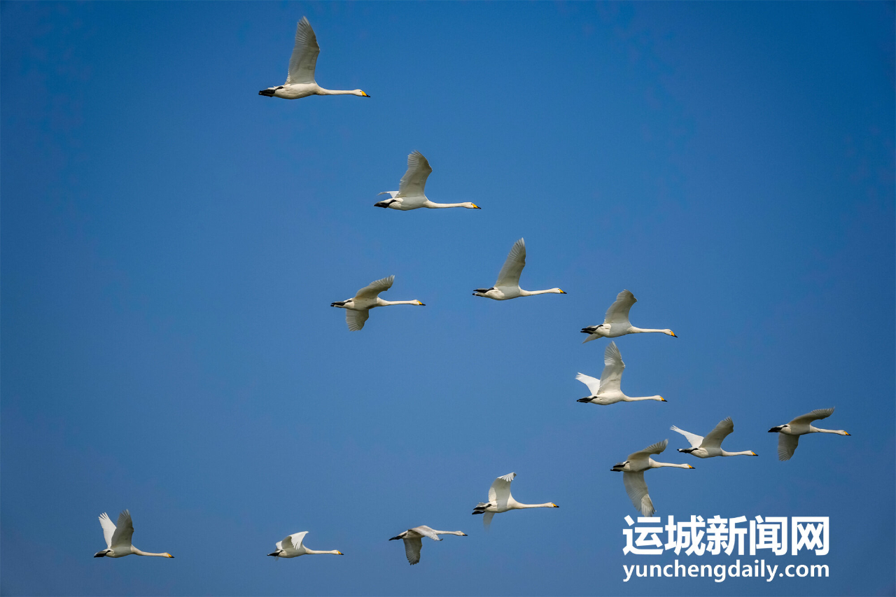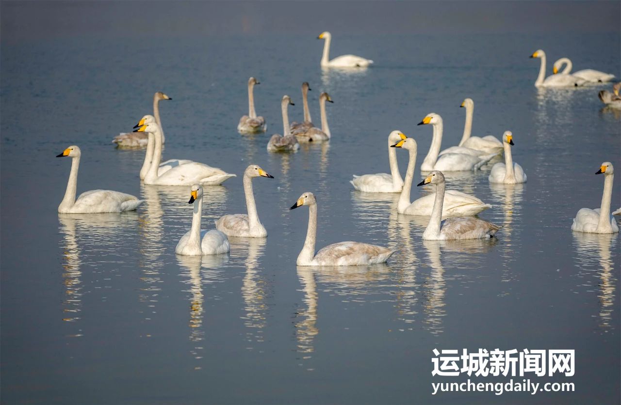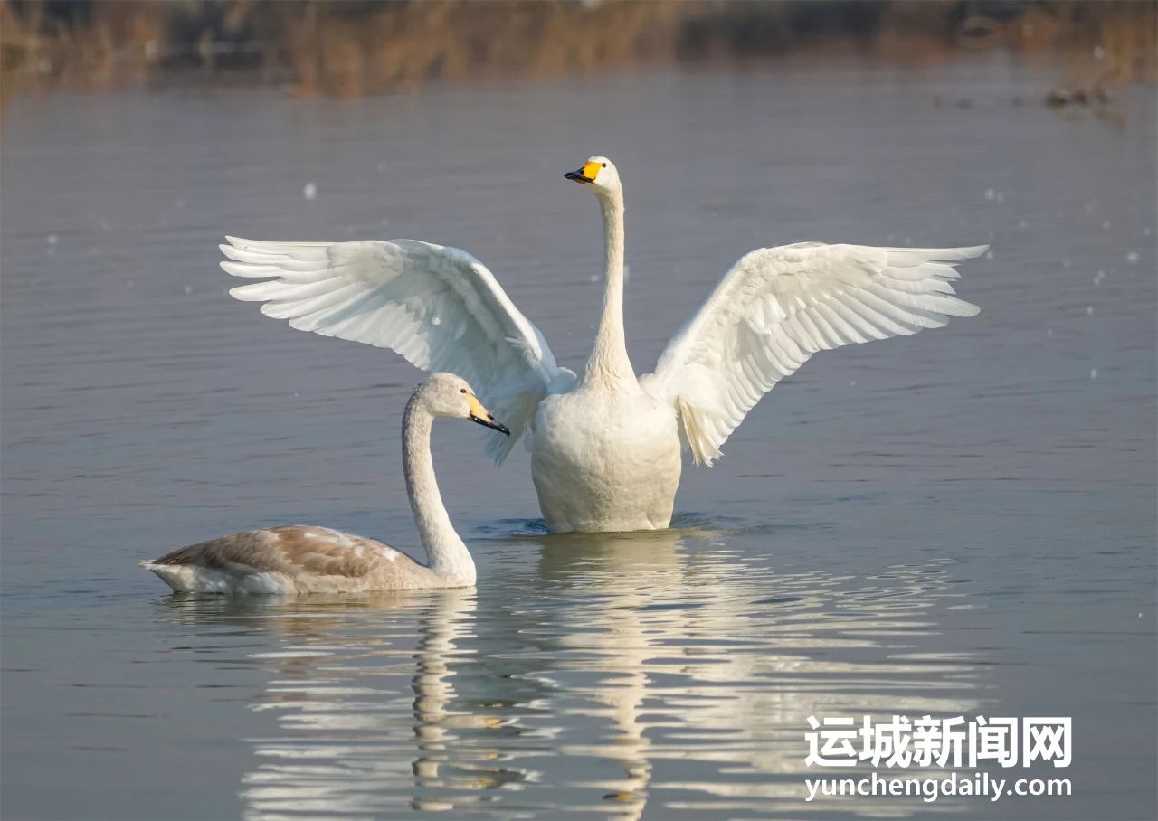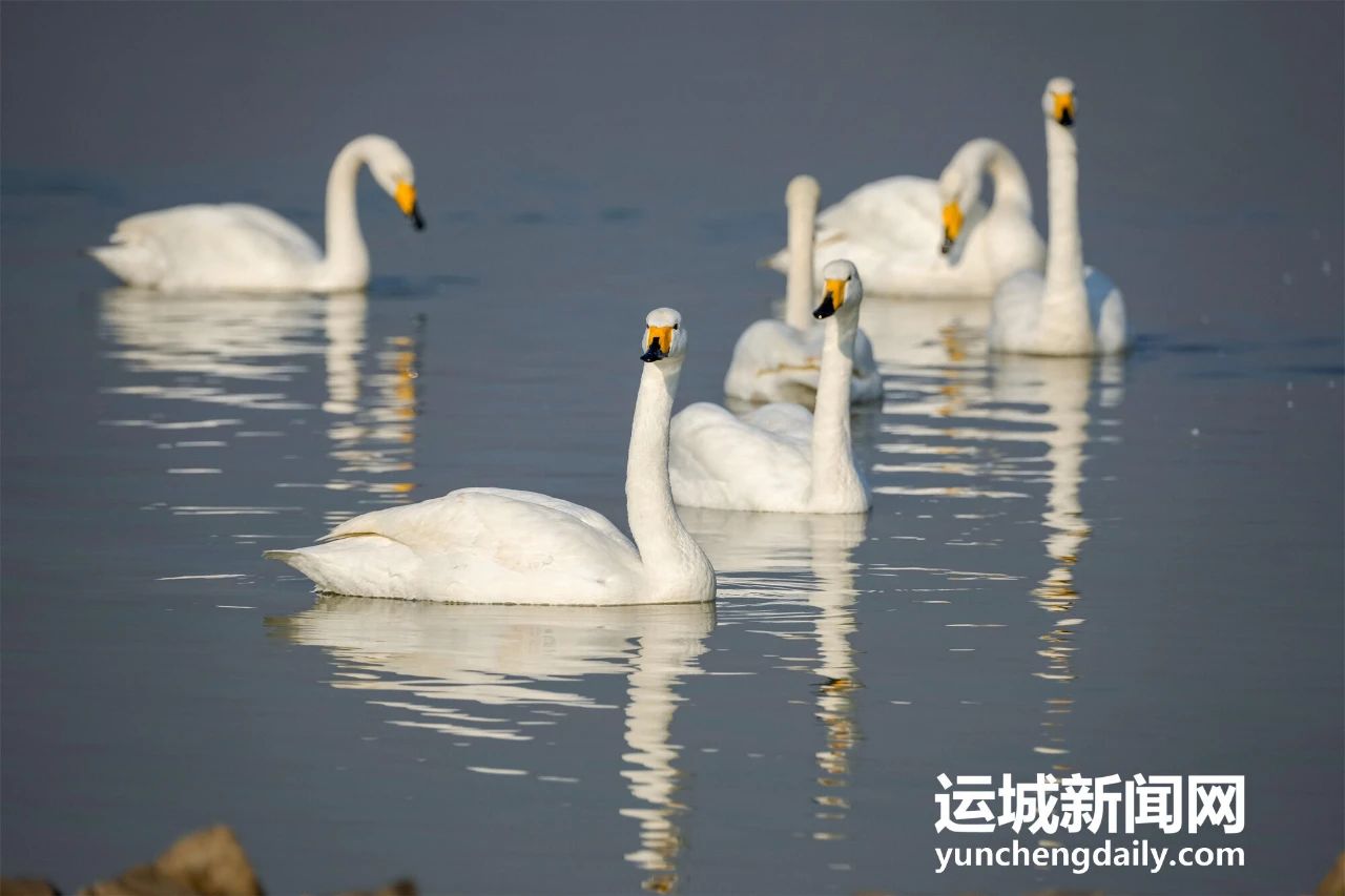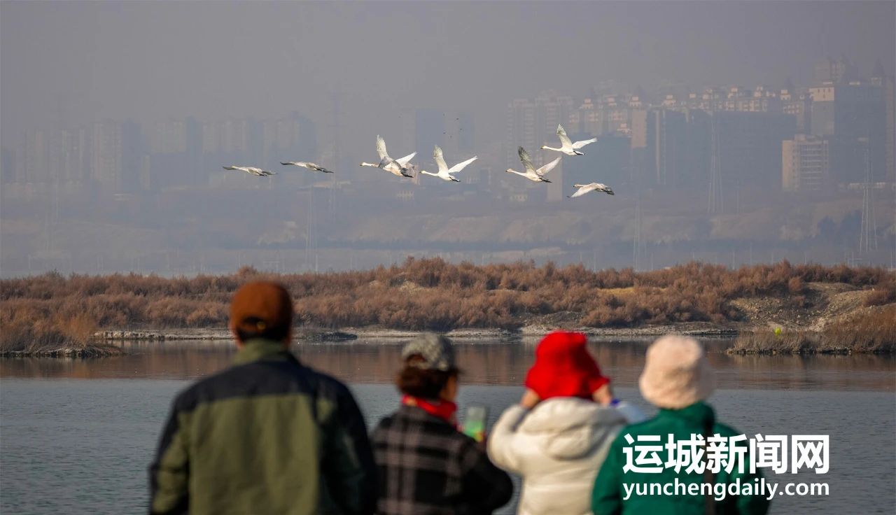 冬日時節,近百只天鵝飛抵鹽湖濕地棲息越冬,它們時而嬉戲、時而飛翔,成為冬日鹽湖一道靚麗的風景,吸引眾多游客前來觀賞。