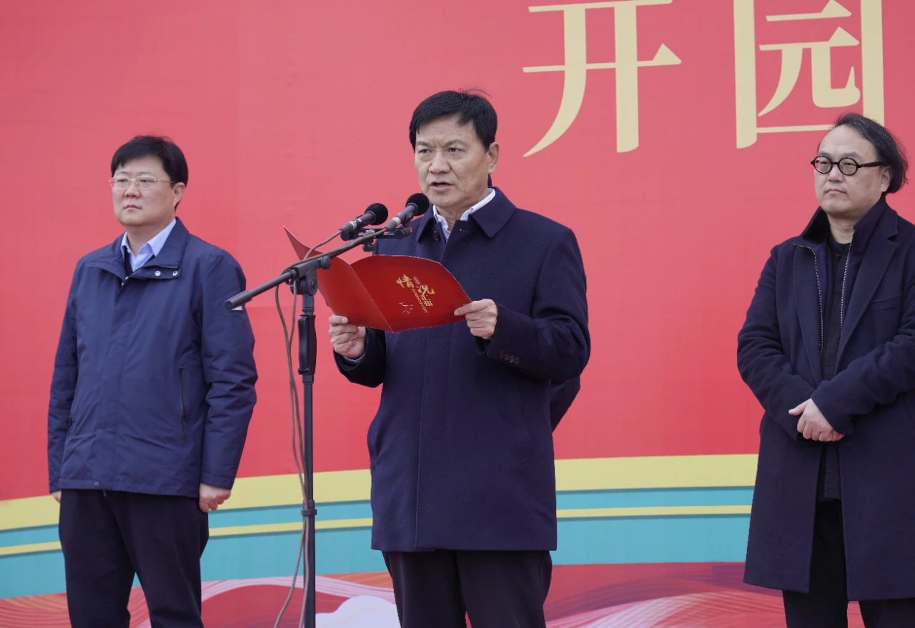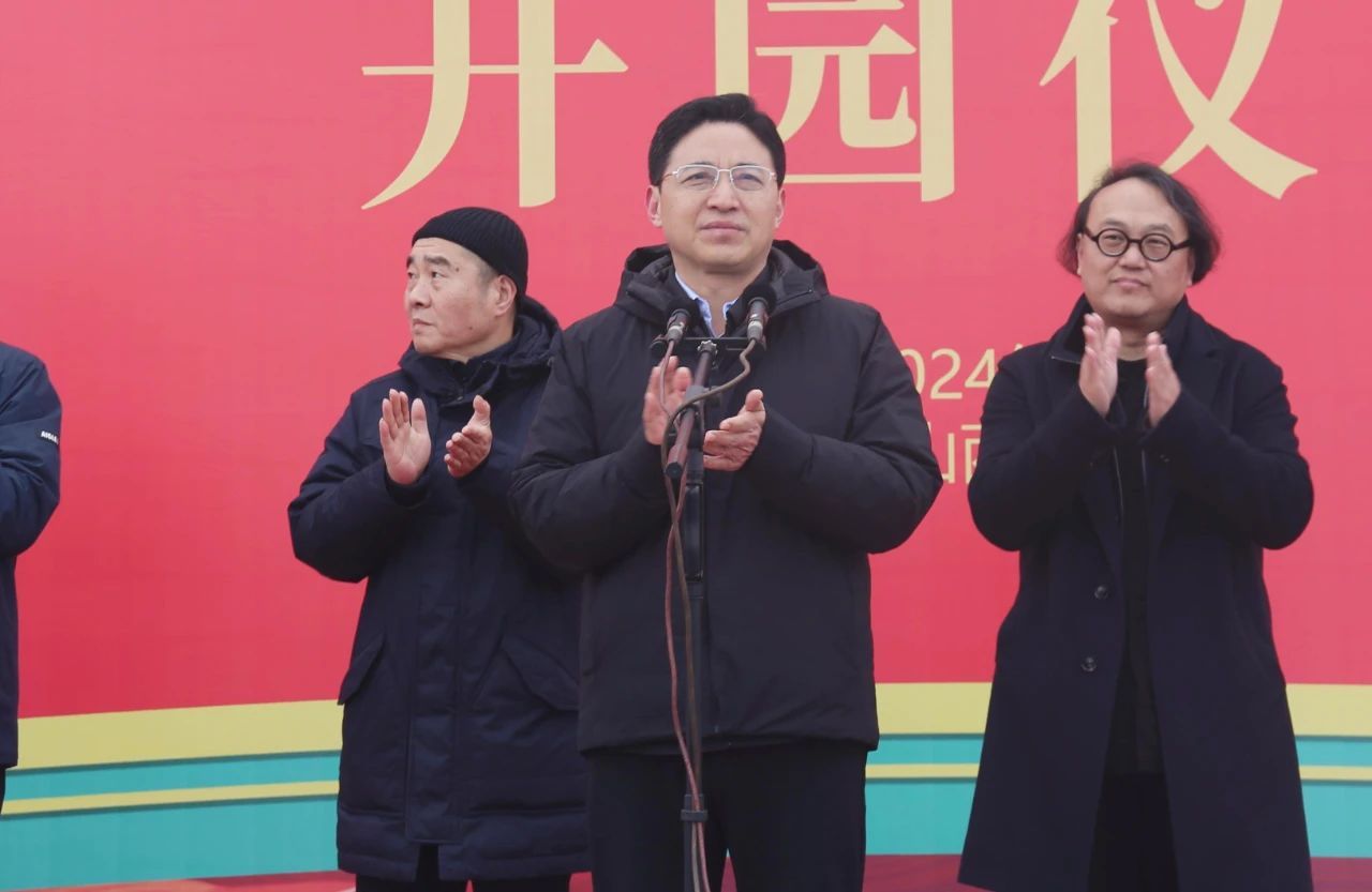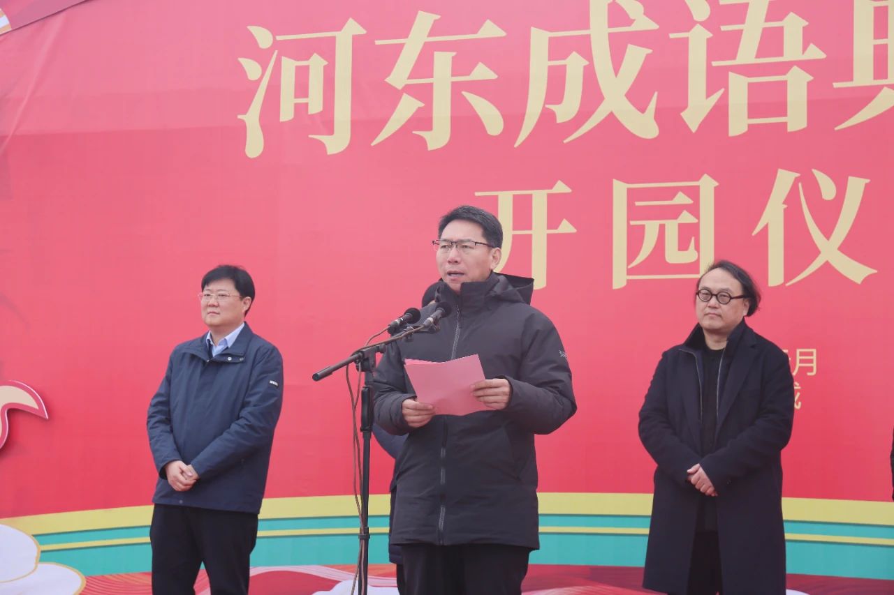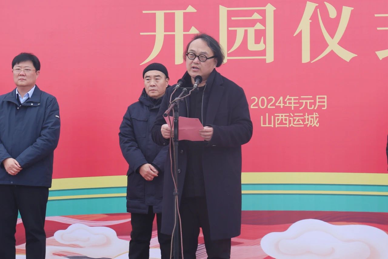 啟動儀式由運城市委宣傳部長王志峰主持,運城市文化和旅游局黨組書記、局長陳小光同志介紹了河?xùn)|成語典故園策劃創(chuàng)意及實體達效情況;市水務(wù)投資建設(shè)開發(fā)有限公司黨委書記、董事長兼市鹽湖生態(tài)保護開發(fā)中心副主任崔作銘匯報了河?xùn)|成語典故園建設(shè)概況;中國美術(shù)學(xué)院院長、黨委副書記高世名同志做了致辭;最后中共運城市委副書記、市人民政府市長儲祥好同志宣布河?xùn)|成語典故園開園,臺上領(lǐng)導(dǎo)和嘉賓共同推動啟動桿,百人齊聚,彩煙如虹當空,裊裊綻放,共同見證了這一激動人心的重要時刻。