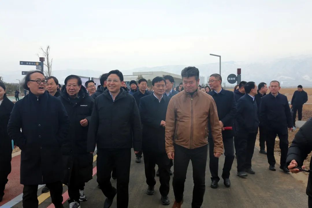 啟動儀式后,各位領(lǐng)導(dǎo)與嘉賓巡園觀賞,參觀藝術(shù)文化雕塑,聆聽河?xùn)|典故。