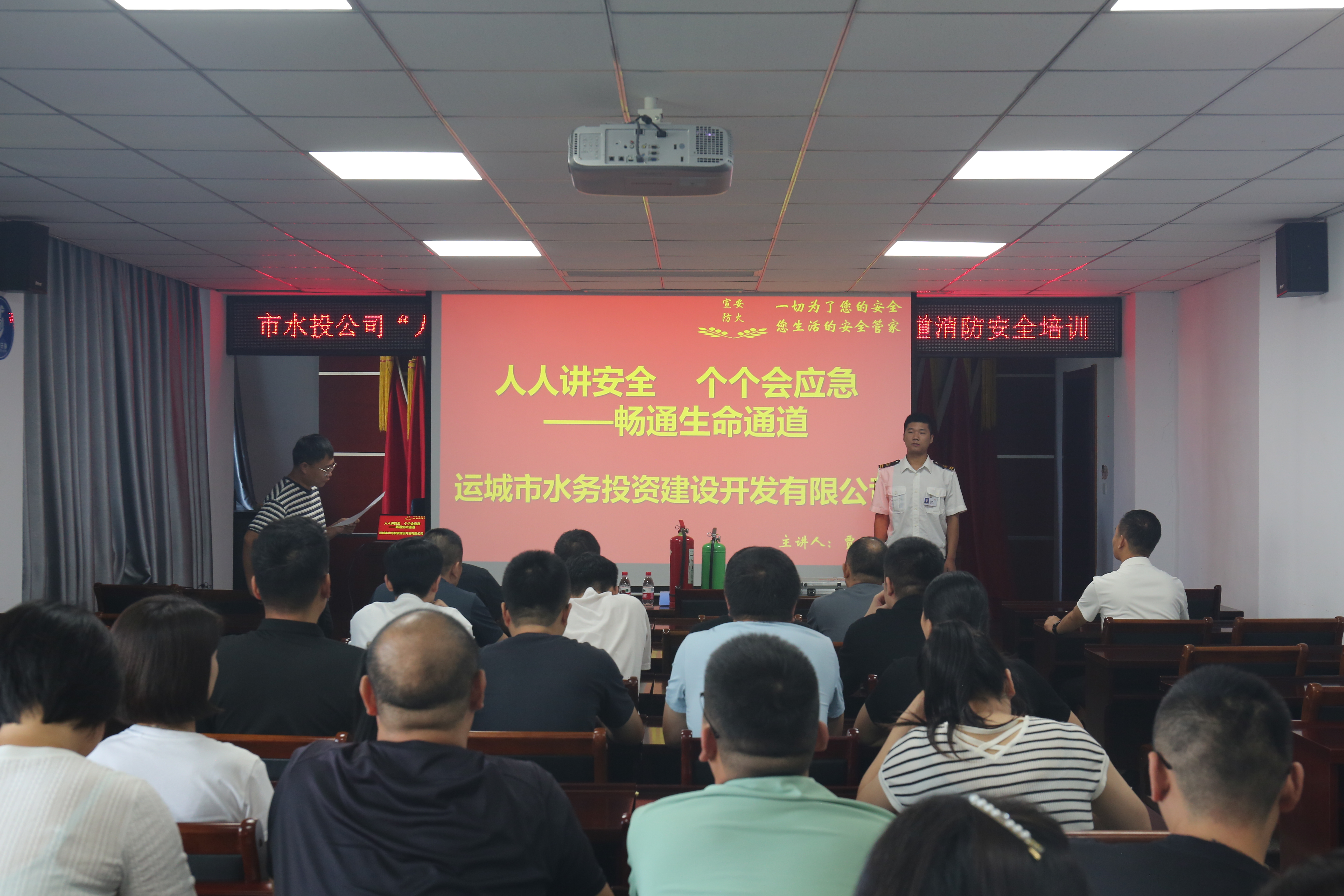 為進(jìn)一步提升消防防控水平,增強職工消防安全意識和責(zé)任意識,9月19日上午,公司組織開展“人人講安全,個個會應(yīng)急”——暢通生命通道為主題的消防安全培訓(xùn)。培訓(xùn)邀請宣安防火專業(yè)人員賈迎港講師授課。圍繞消防知識、消防意識、消防工具的使用及常用滅火方法等多方面內(nèi)容展開培訓(xùn),公司機關(guān)30余人參加。