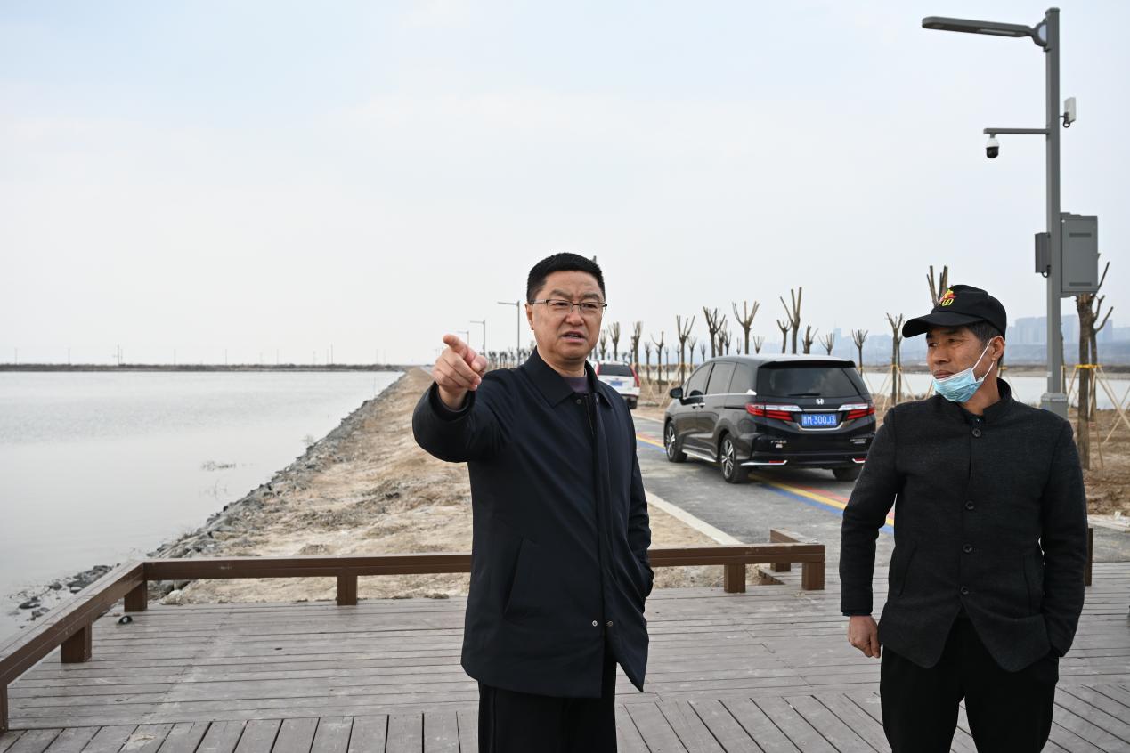 2月19日,公司董事長薛文兵實地調研鹽湖堤埝除險加固及生態修復項目,總經理楊素平、項目部及參建單位負責人陪同參加。