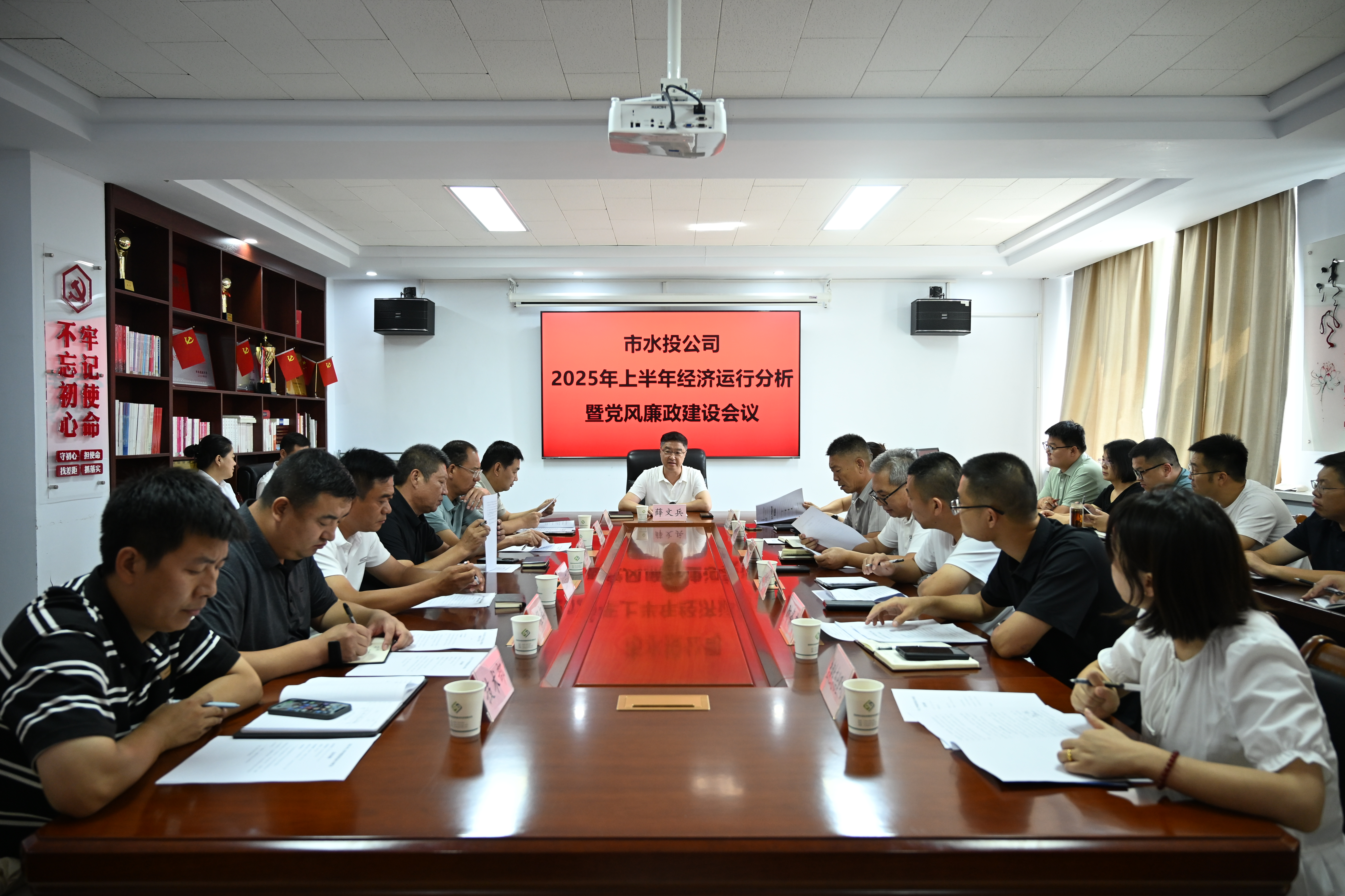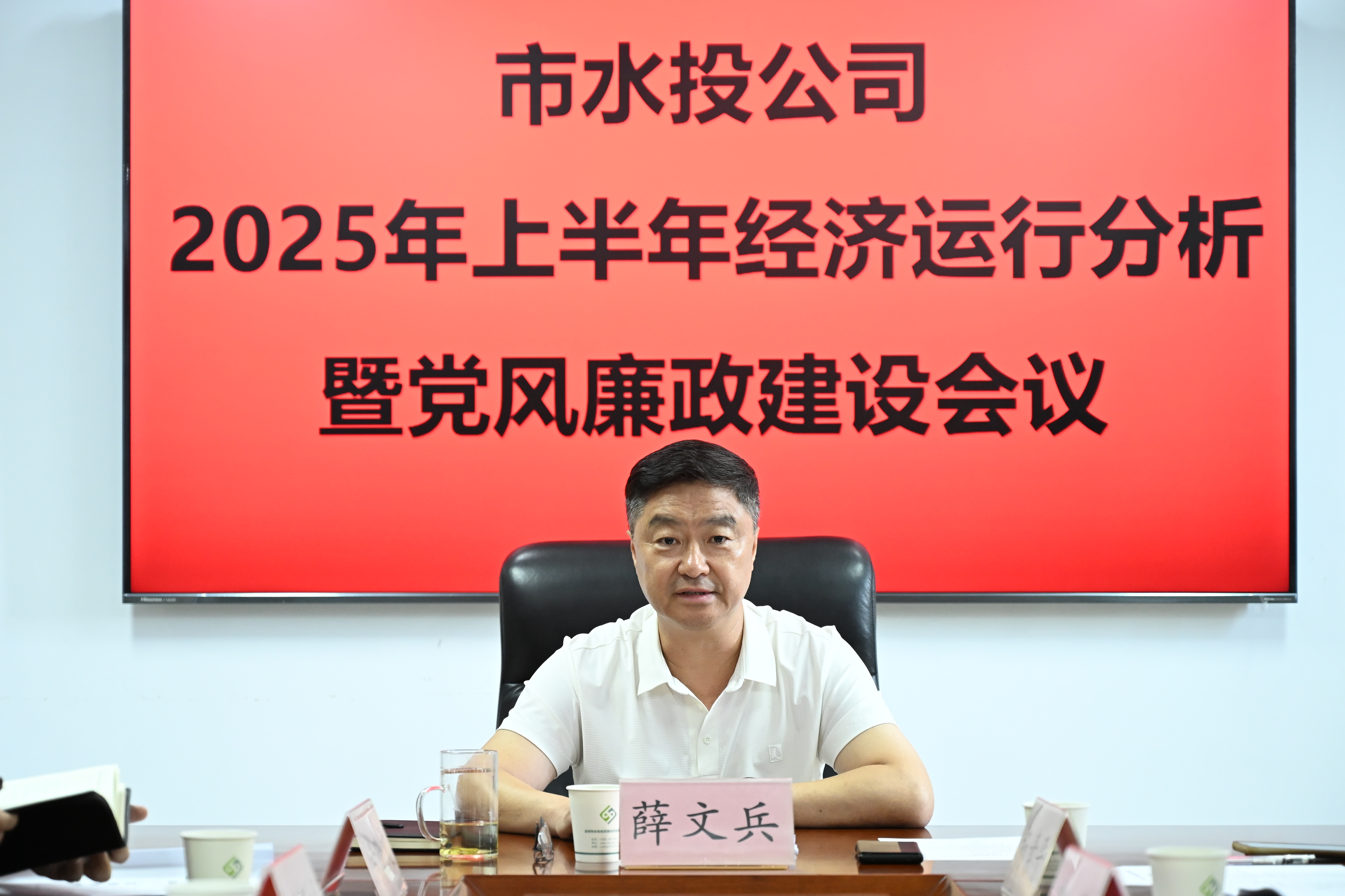 7月31日下午,市水投公司黨委書記、董事長薛文兵主持召開2025年上半年經濟運行分析暨黨風廉政建設會議,總結上半年工作成效,研判經營發展形勢,明確部署下半年重點任務。黨委副書記、總經理楊素平,黨委委員、紀委書記尚曉文,公司董事郭龍,子公司班子成員、公司中層干部參加會議。相關部門及子公司匯報了工作情況。