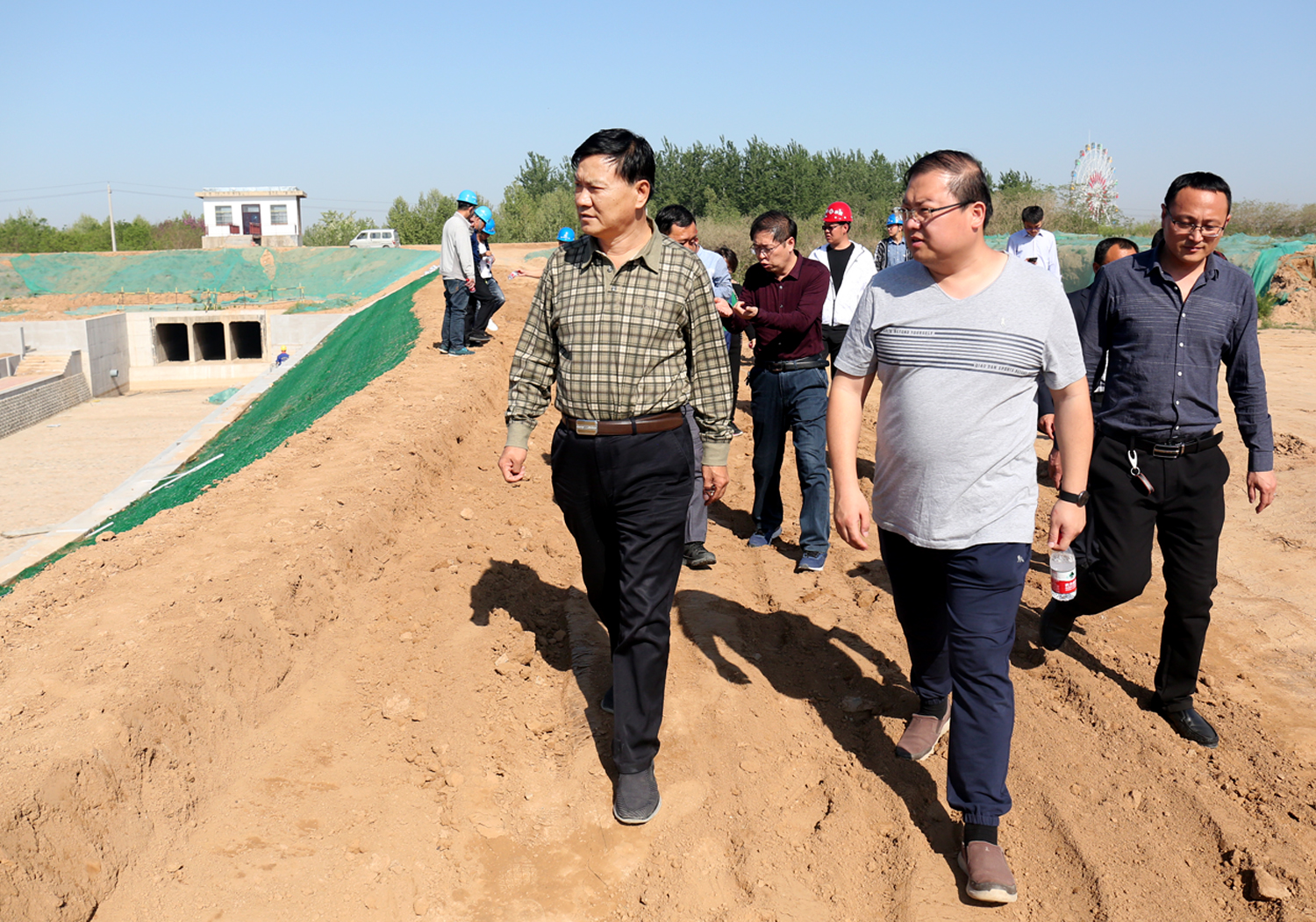 4月份以來,針對姚暹渠空港段項目施工中雨水浸泡、步道綠化、高壓電塔加固、污水管網重疊等問題,公司董事長崔作銘帶領公司相關人員多次深入施工現場,逐段實地查看,會同項目公司、設計單位、監理單位、項目部,共商破解對策,提出破解辦法,有效保證了工程建設順利推進。