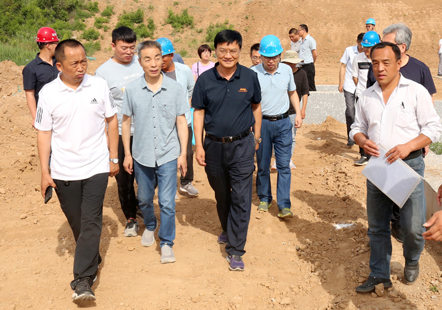 6月1日上午,公司董事長崔作銘率領(lǐng)公司工程專家和相關(guān)人員赴姚暹渠空港段現(xiàn)場辦公,會(huì)同設(shè)計(jì)單位、項(xiàng)目公司、監(jiān)理單位和項(xiàng)目部,討論解決空港段施工中存在的渠堤綠化和道路排水等問題,并逐段踏勘了姚暹渠禹都段地形地貌和地表附著物現(xiàn)狀。