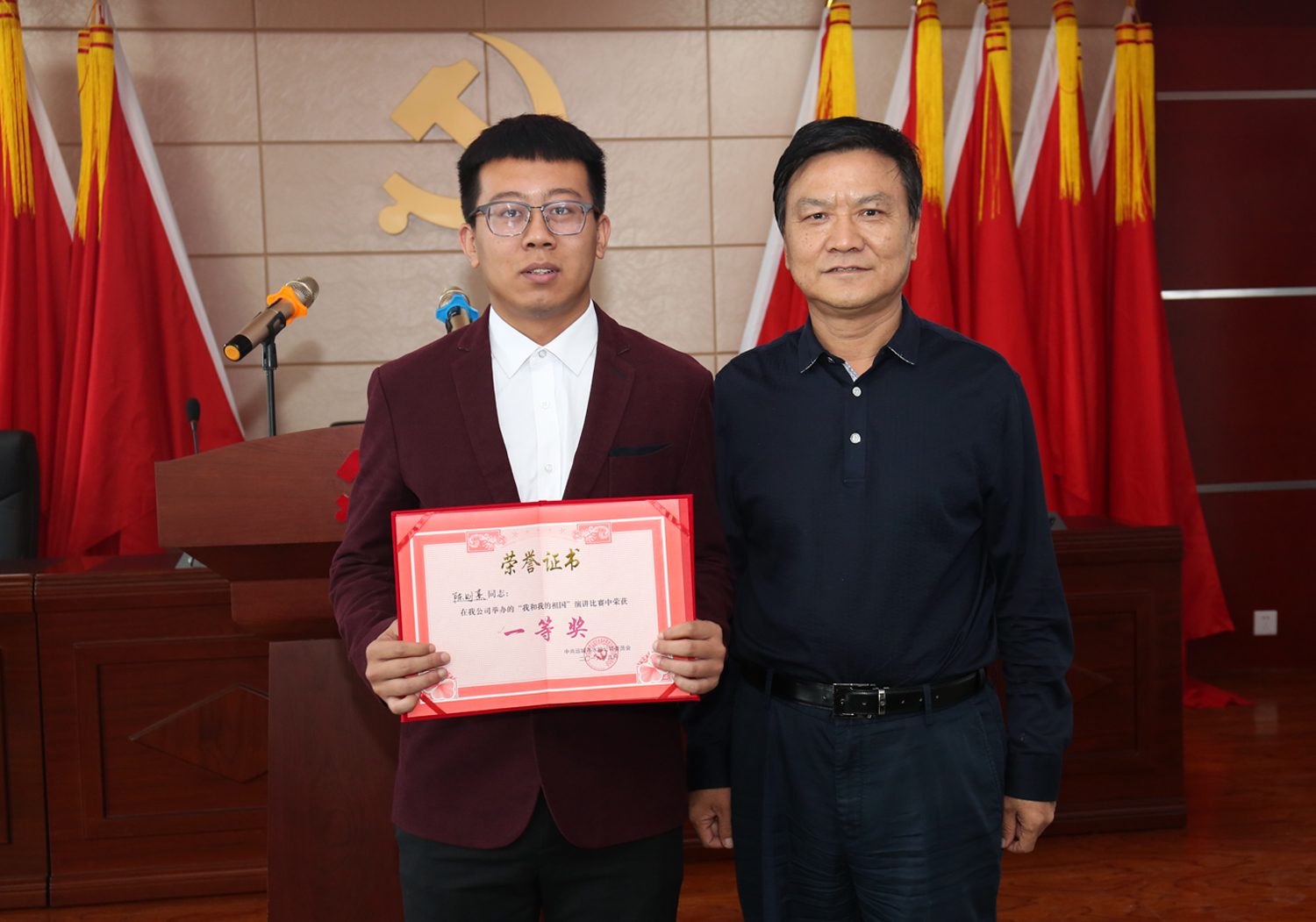 來自公司及各下屬單位的六名選手,圍繞“我和我的祖國”這一鮮明主題,用飽滿熱情的態度、富有激情的聲音,為大家呈現了一場精妙絕倫的視聽盛宴。選手們從愛崗敬業、增強自信、放飛夢想等方面謳歌贊美我們偉大的祖國,各有側重、立場獨到,妙語連珠、聲情并茂、繪聲繪色的演講風格,不僅表明了水投人對工作的熱忱,更表達了對祖國母親的深情與感恩,現場的熱情被歡樂和榮耀一次次點燃。本次演講比賽采取評委現場打分、現場宣布結果的形式,按照演講內容、演講技巧、演講效果等進行綜合評分。經過激烈的角逐,最終評出一等獎一名,二等獎兩名,優秀獎三名,公司領導班子成員向選手們頒發了獲獎證書。