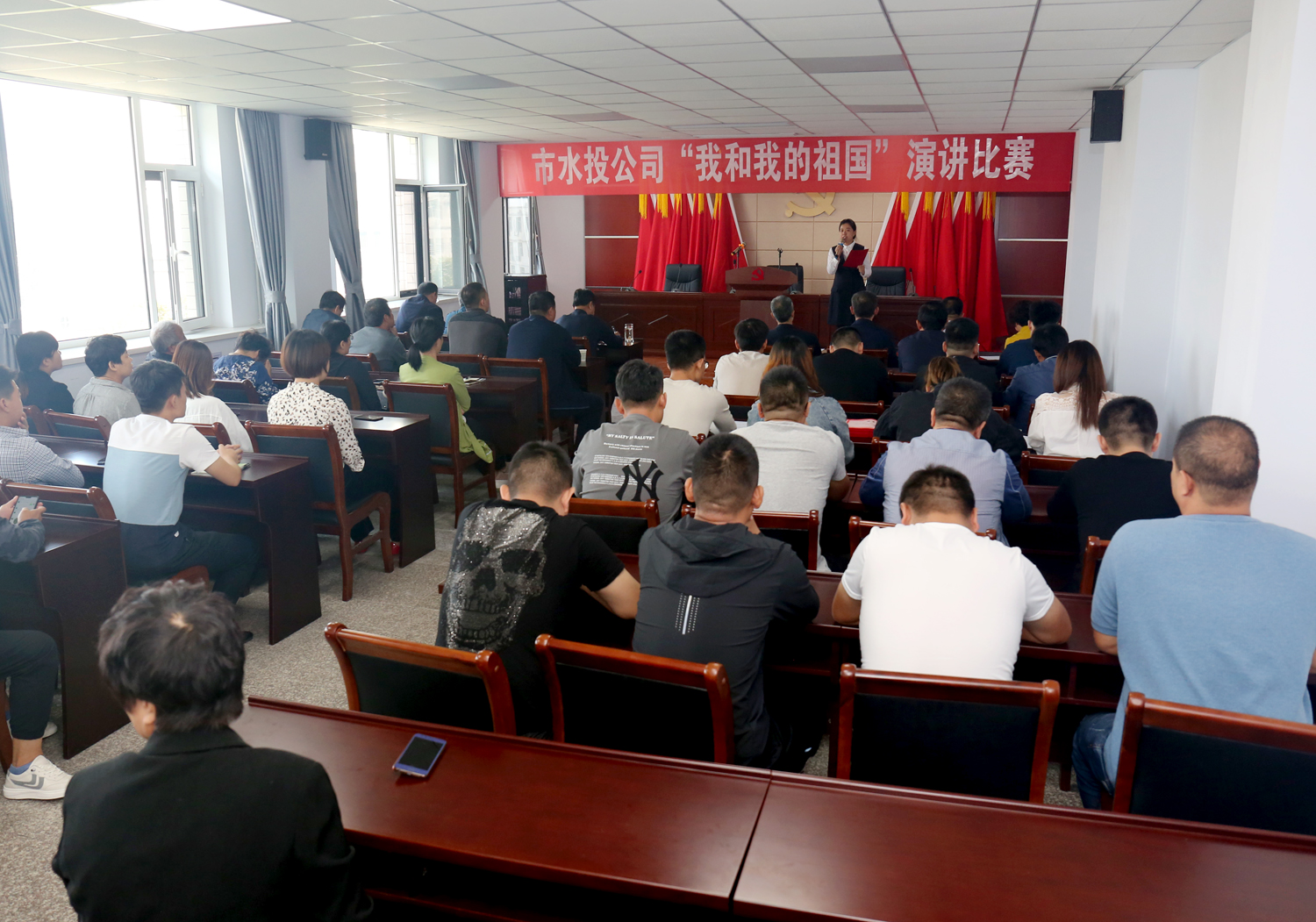 為了熱烈慶祝中華人民共和國成立70周年,扎實開展“不忘初心、牢記使命”主題教育活動,9月23日上午,市水投公司在六樓會議室舉辦“我和我的祖國”演講比賽活動。市水投公司及各下屬單位優秀代表參加了比賽,公司領導班子成員及各下屬單位班子成員觀看了比賽。