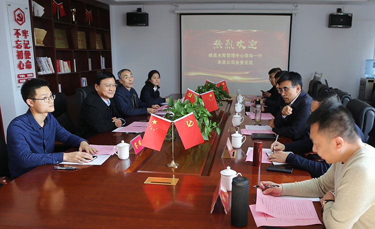 11月10日下午,呂梁市橫泉水庫管理中心主任任劍鋒一行來我公司進行業務交流。黨委書記、董事長兼總經理崔作銘、副總經理呂希汶參加了交流會。