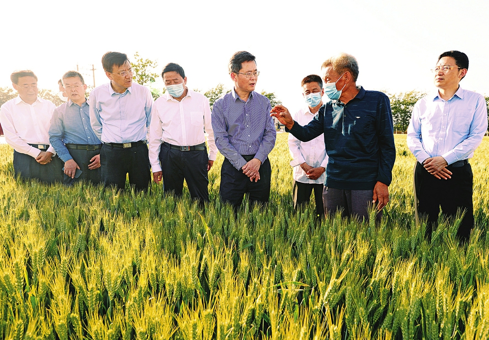 運城是農業大市。夏縣水頭村優質小麥正值灌漿關鍵期,豐收在望。藍佛安走進田間察看麥苗長勢,與農民、農技專家交流,了解麥種培育、災后補種等情況,強調,要做好麥田中后期管理,全力奪取夏糧豐收,為保障國家糧食安全作出貢獻。在水頭村,藍佛安與干部群眾親切交談,詳細詢問農民特別是脫貧人口就業及收入等情況,指出,基層黨組織要發揮戰斗堡壘作用,大力發展特色產業,做好收入監測、困難群眾幫扶,加強就業支持及兜底保障,促進農民收入穩定增長,持續鞏固拓展脫貧攻堅成果,全面推進鄉村振興。在維之王食品有限公司,藍佛安察看果品生產車間,對企業采取保護價收購農產品的做法給予肯定,指出,農民是現代農業產業鏈的基礎環節,要完善利益聯結機制,吸引更多農戶投入現代農業發展,實現企農雙贏。在格瑞特酒莊有限公司,藍佛安察看橡木桶貯存工藝,了解葡萄酒研發、市場銷售等情況,勉勵企業拓展市場、做響品牌,不斷增強龍頭帶動作用。