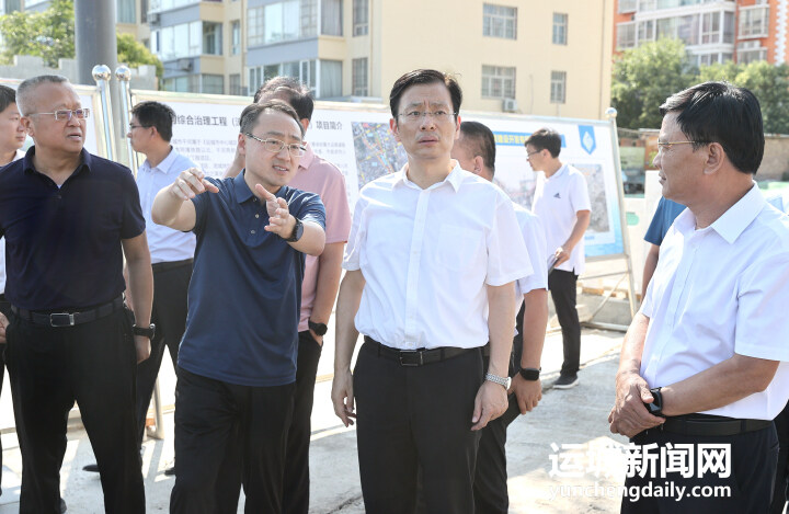 7月7日下午,市委書記丁小強深入城東污水處理廠末端明渠處、鋪安街安邑石門處、鋪安街安邑湖項目建設現場、禹都南大門姚暹渠綜合治理工程現場、機場大道干河明渠段治理現場等地,調研中心城區防汛備汛工作,并主持召開中心城區防汛備汛工作會議。市委副書記、市長儲祥好出席會議并提出具體要求。市領導陳杰、喬登州、刁海鵬等參加。