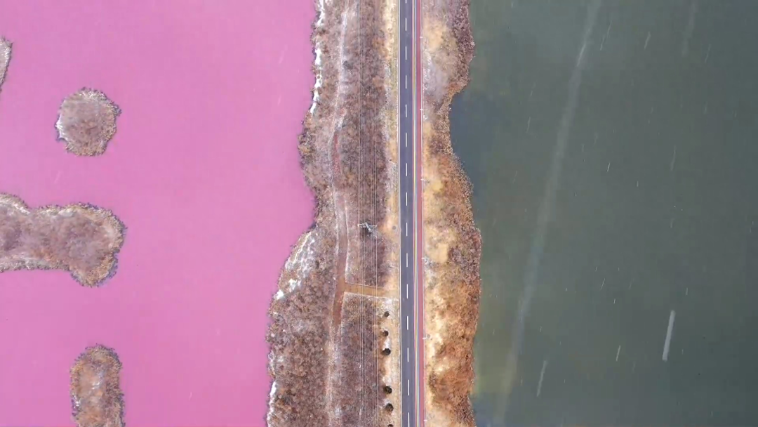 近日,山西運城迎來大范圍降雪,冬日里呈現出多種顏色的鹽湖,在白雪的裝扮下分外美麗。
