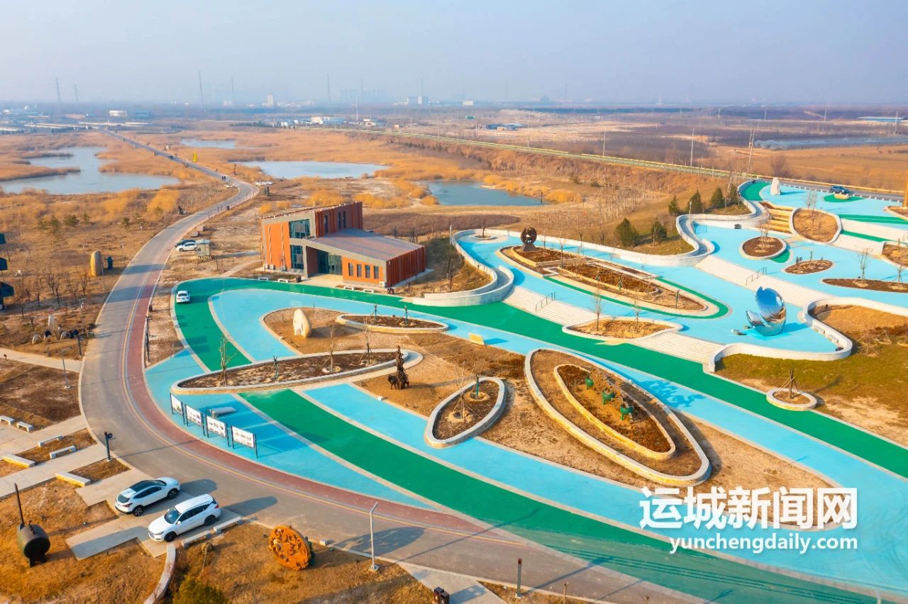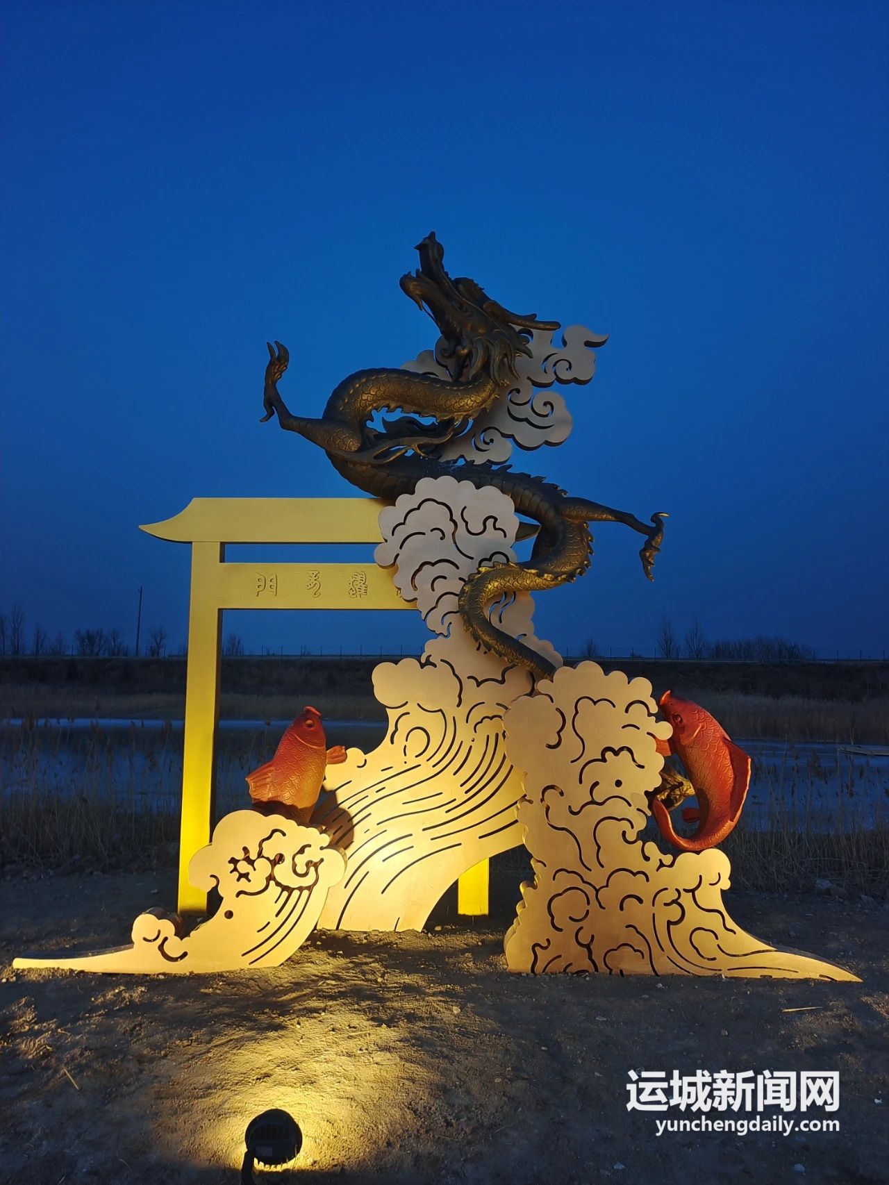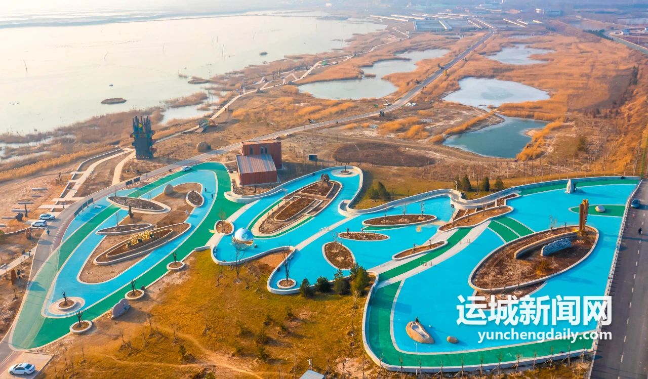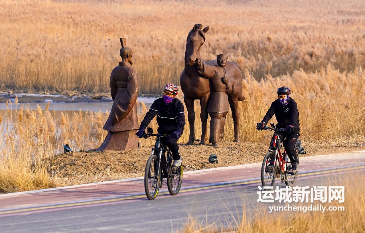 剛入園就看到極具河東特色的風物,一冊竹簡矗立在入口處,“雷澤巨跡”“鯉躍龍門”幾個字入了心。再往深處,亦見豐盈清雅的山水風光。金色的蘆葦叢,波光粼粼的鴨子池,遠處城市煙火氣的剪影,近處清麗婉轉的鳥鳴聲……