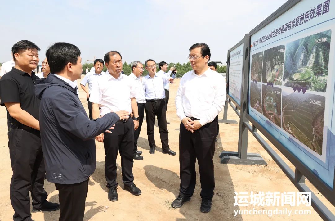 近年來,市委、市政府加大中條山廢棄露天礦山修復力度,昔日破損山體被綠植覆蓋、恢復原貌。在南山新境市民廣場,丁小強詳細了解受損山體生態修復情況,強調,