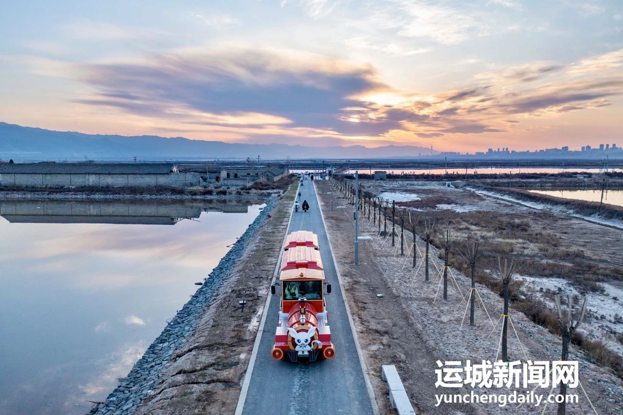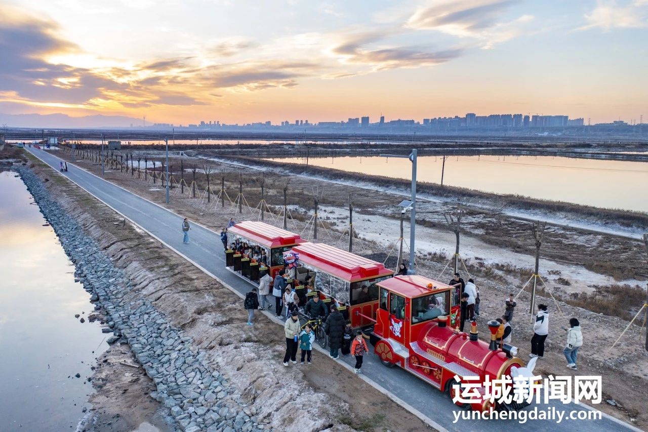 據悉,2021年11月,市水務投資建設開發有限公司實施了運城鹽湖堤埝除險加固及生態修復項目,通過湖內堤埝除險加固、內外江道疏浚、畦塊清淤、垃圾清運及岸帶邊坡綠化、環湖堤埝綠道建設等工程措施,形成“水清、堤固、岸綠、景美”的優美生態景觀,對提升我市城市品質、加快鹽湖修復和保護影響深遠、意義重大。近年來,秉承對鹽湖‘保護為主,適當開發’的原則,市水務投資建設開發有限公司特推出了鹽湖觀光小火車供游客乘坐。去年夏天,小火車在鹽湖22號堤埝處發車。今年冬天,為方便游客觀賞天鵝和木棧道,改為在鹽湖11號路管理房處發車。