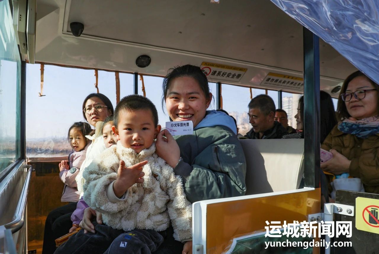 “你看,在小火車的每一個玻璃門中間,我們都展示了運城鹽湖堤埝除險加固及生態修復項目的成效圖,讓游客共同見證鹽湖的變化。”